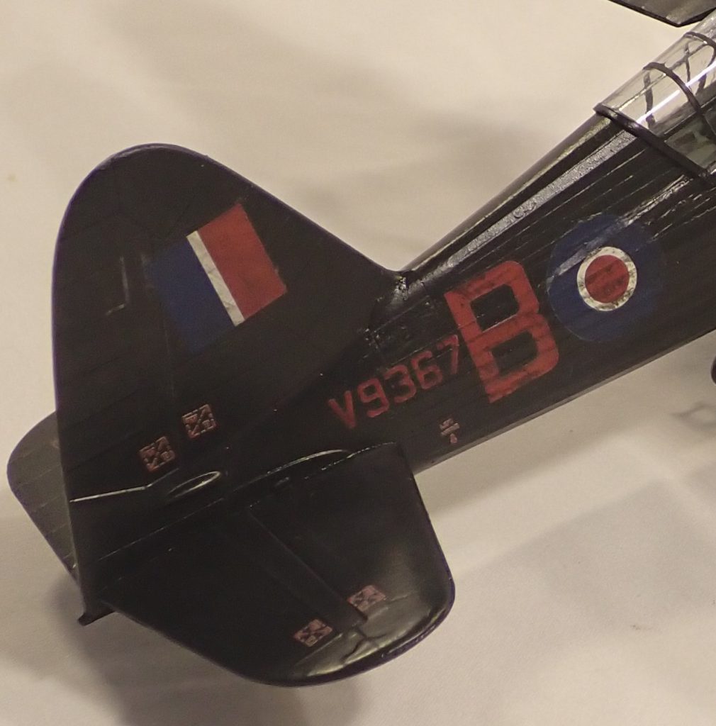 Positioning of the serial numbers varied. During WW1 the serial appeared on the tail upright or rear fuselage. This continued in the interwar period with the addition of serials on the underside of the wings. It was originally conceived for identification purposes from the ground as well as allowing the general public to report any unauthorised low flying incidents. This practice ceased with the outbreak of WW2 and the serial numbers were displayed on the rear fuselage, usually just before or under the stabiliser, or tail upright, or for a period in the late 1930s where the serial appeared in both positions before the standardised tail flash. Colour ranged from black, sky, white or red depending on the background. Red was usually reserved for the matt black finish on night fighters and Bomber Command aircraft as well as some FAA planes.