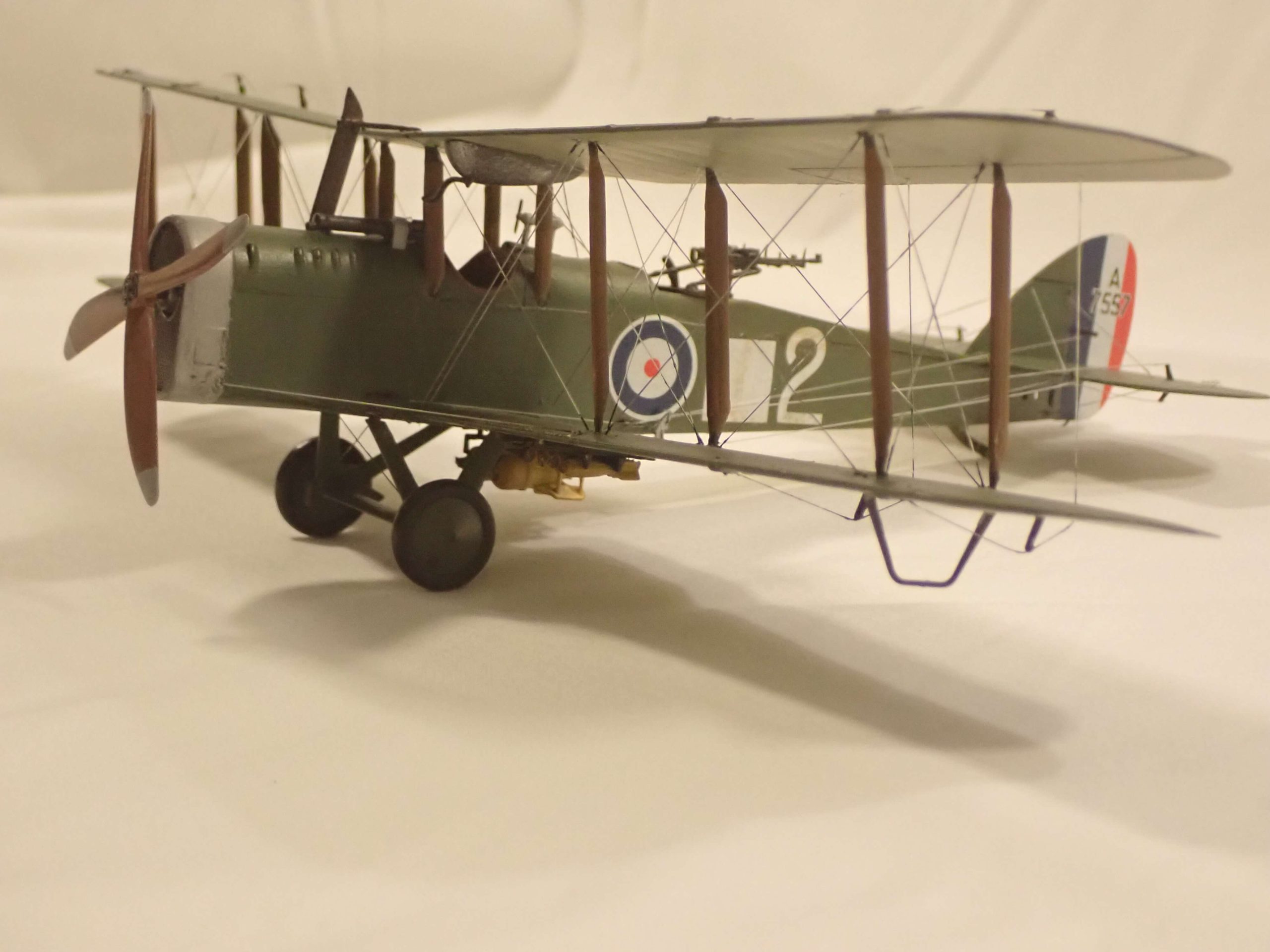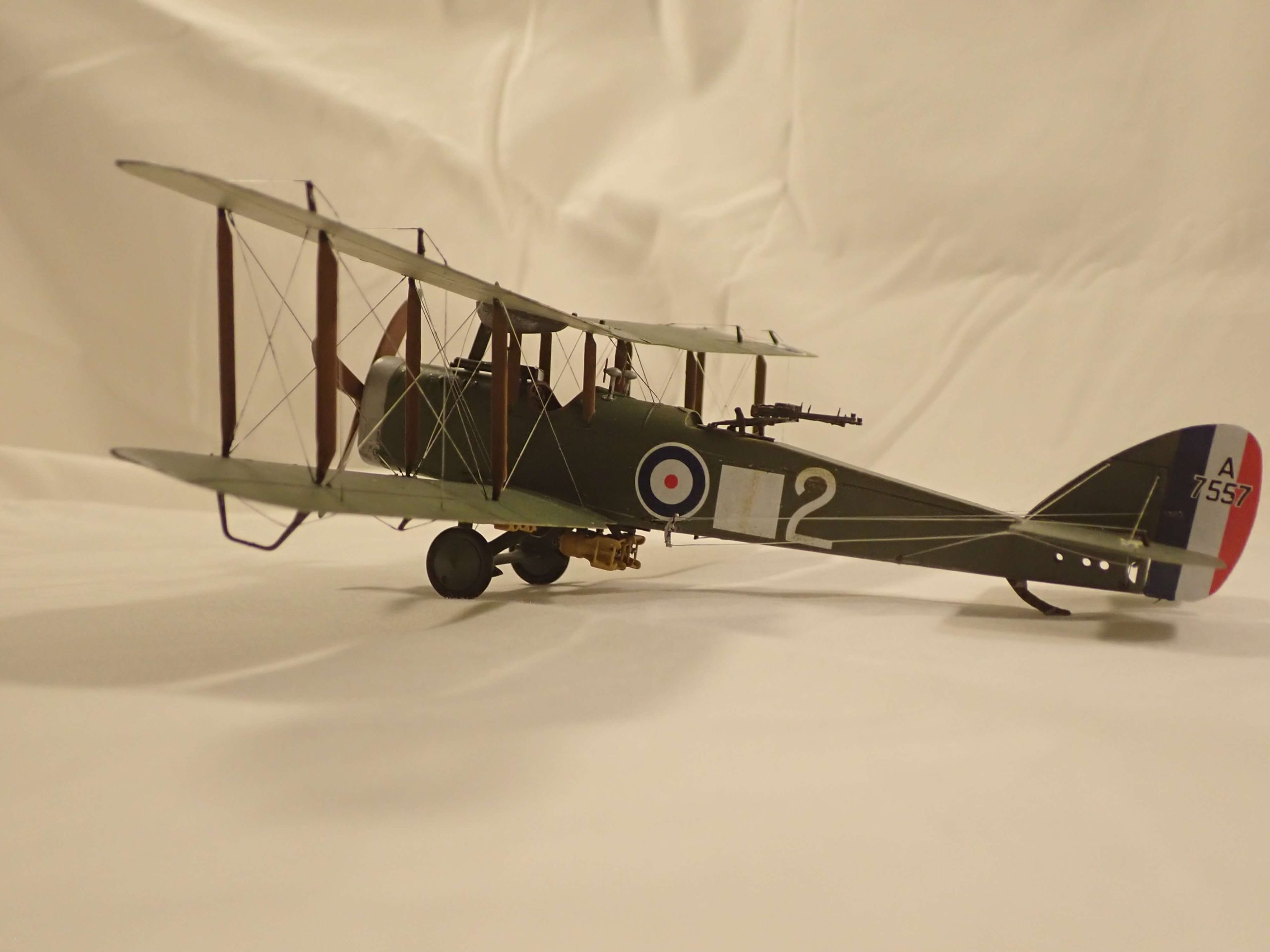The Airco DH.4 was a twin seat day bomber tractor biplane, another of Geoffrey de Havilland’s designs. The type became the first specifically designed bomber capable of defending itself. It was armed with forward firing Vickers .303 machine gun mounted on the nose and twin Lewis machine guns mounted in the observers cockpit. The type could carry up to 322lb of bombs under the fuselage and on wing racks.