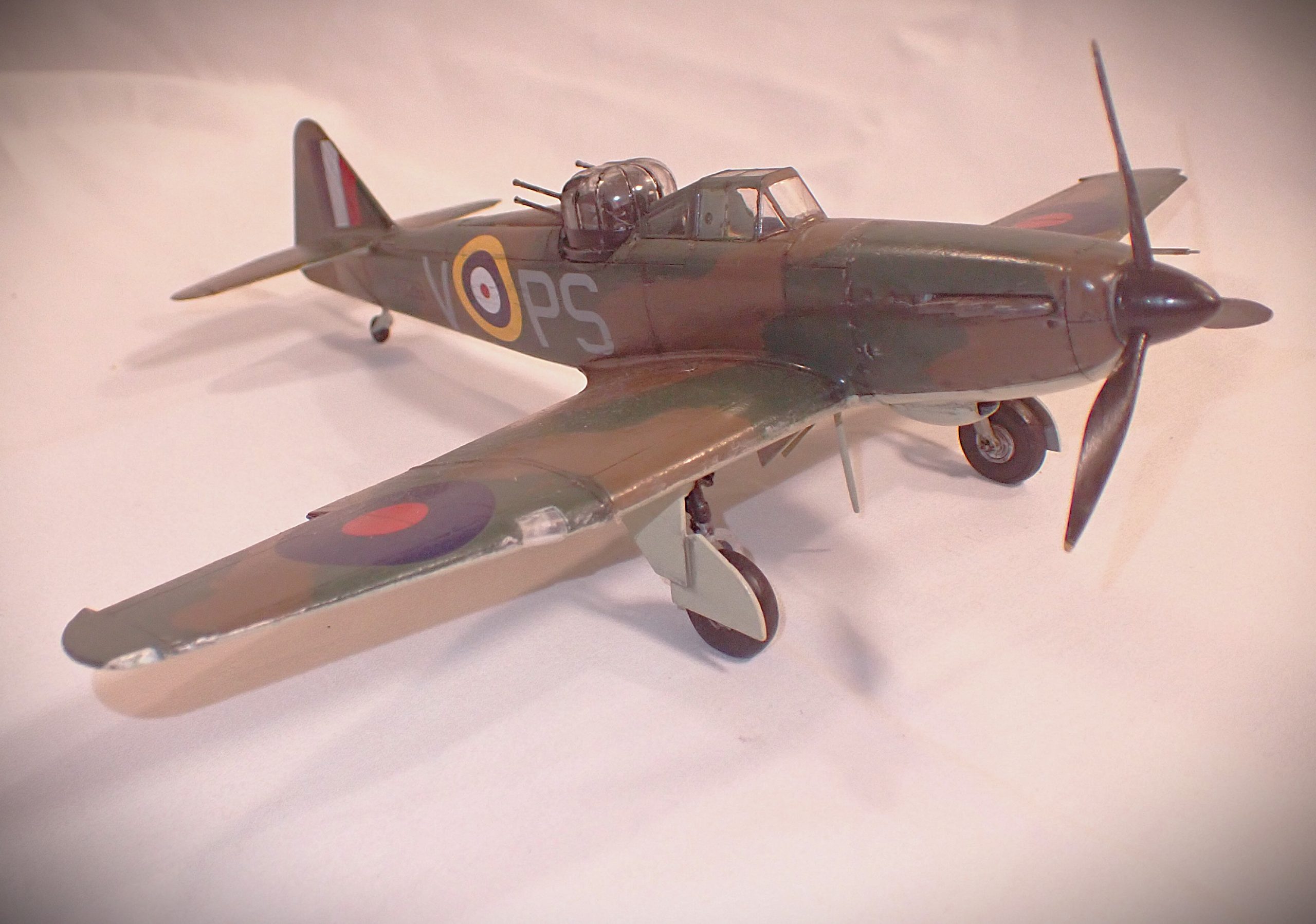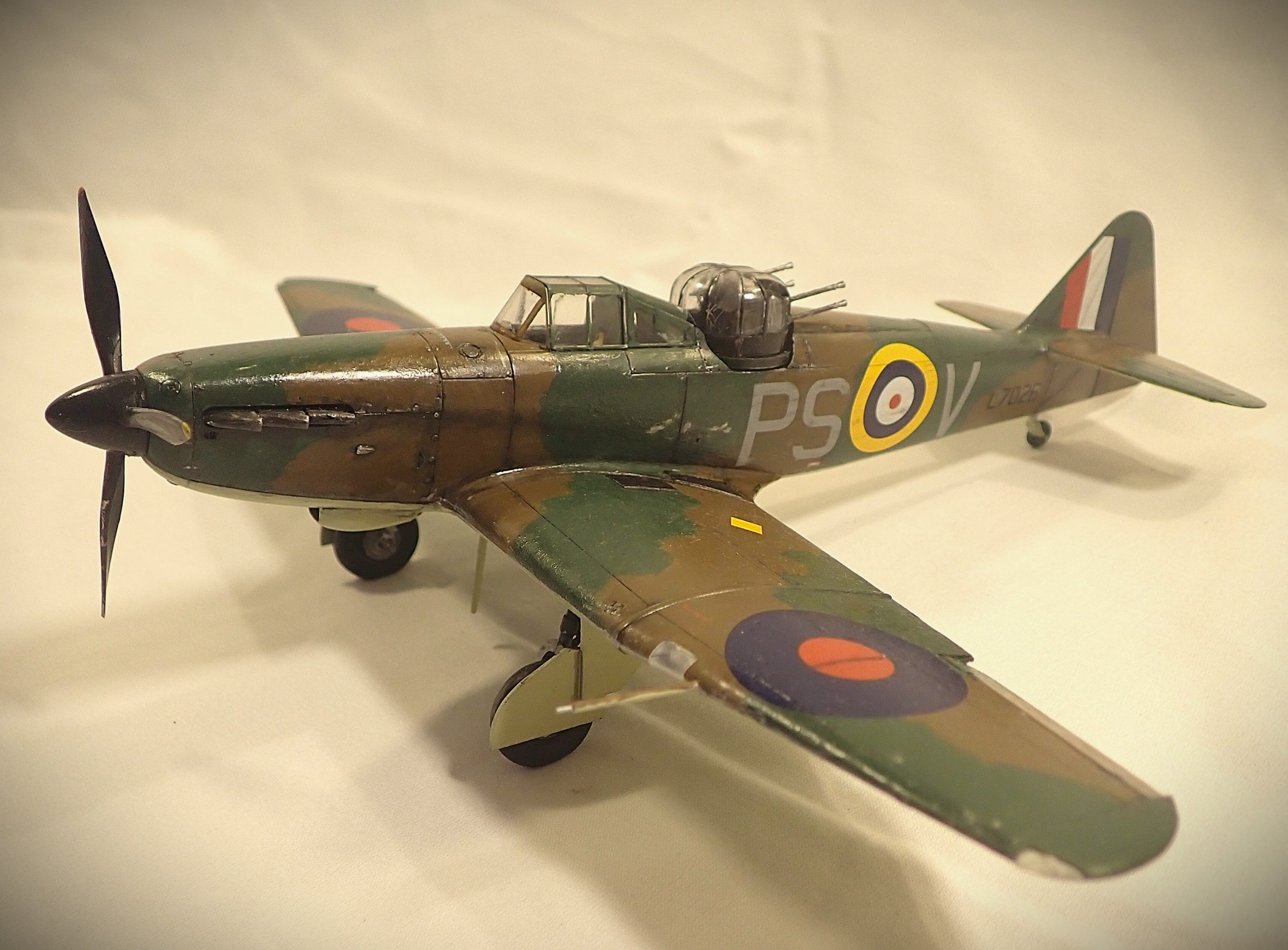 The concept of a turret fighter was born from the ever-increasing threat of war as a requirement by the RAF for a capable interceptor to defend against the expected hoard of German bombers. It was not expected that the bombers would be escorted as it was out of range for the German fighters. However, with the fall of France many German air groups relocated and became very much within range of British air space. Consequently, the Defiant, although very capable in shooting down enemy bombers, was no match for the faster and nimbler Messerschmidt Bf109. At first the German pilots mistook the Defiant for Hurricanes and attacks on the rear of the Defiant were often disastrous with the four Browning .303 machine guns scoring many hits. The German pilots changed tactic and used frontal attacks or from underneath where the guns could not harm them and Defiant losses began to mount considerably. During the Battle of Britain, the Defiant had a high kill ratio shooting down many bombers and fighters. It was also very effective as a night fighter from July 1940, with huge success during the Blitz. After high losses throughout July and August 1940 during daytime operations, the Defiant was used for night fighter roles only. They were eventually equipped with aircraft spotting radar which greatly improved their capability until the type was superseded in 1942 by the Beaufighter and Mosquito. Despite scoring many kills the type suffered many losses being withdrawn from frontline service in early 1942 and used in training roles and target tug duties until it was retired at the end of the war. Some were used for air sea rescue but were deemed unsuitable after only a few months. A few were used as test beds for engines, guns and ejector seats up until 1948.