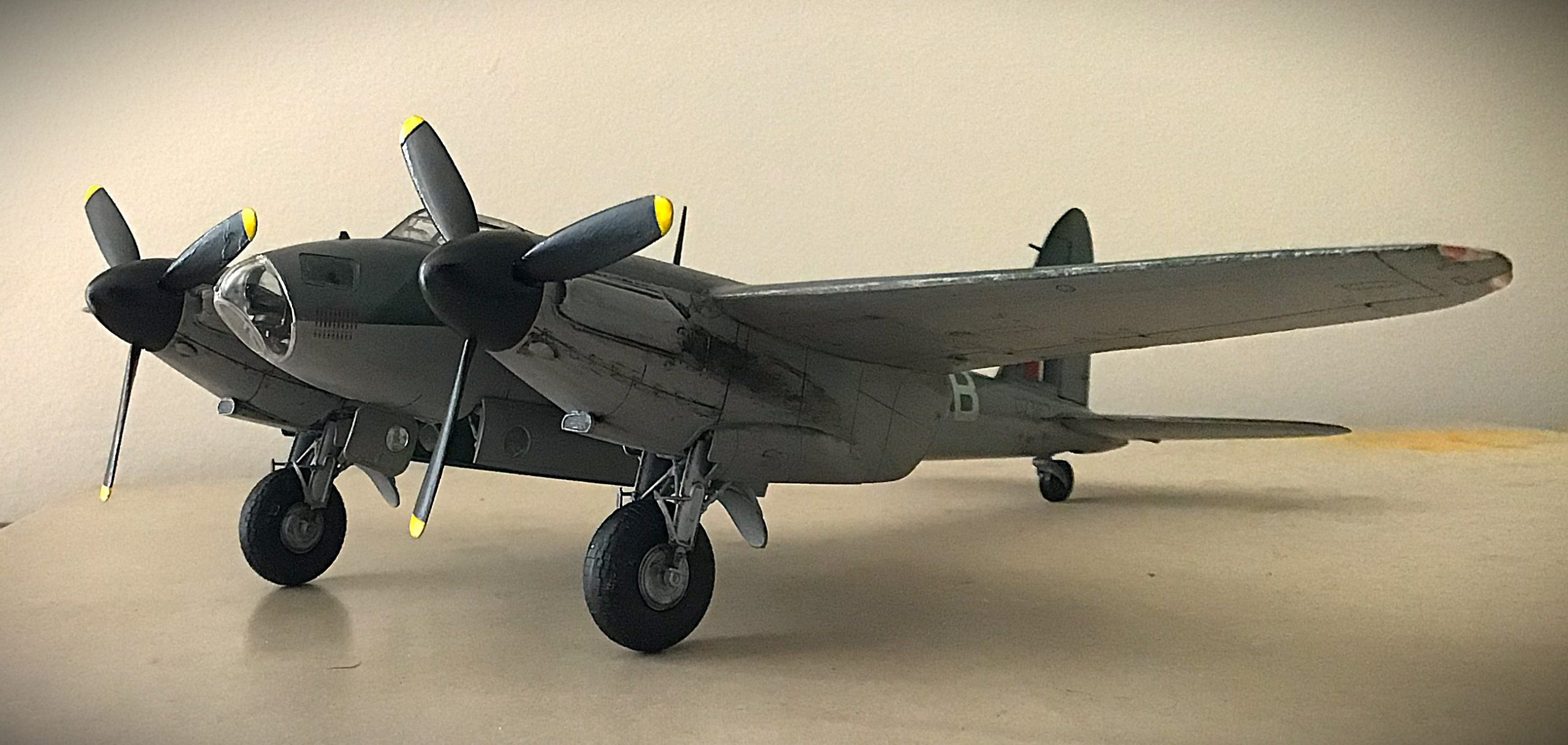 Notable variants included the Mk.XVIII which was equipped with a six pounder Molins anti-tank gun in the bomb bay for attacks against U-Boats and German shipping in the Atlantic with great success. The B Mk.IX was capable of 408mph at 20,000ft and could carry 2,000-4,000lb bomb combination as well as the 4,000lb ‘Cookie’ bomb. There was a version built to carry the ‘Upkeep bouncing bomb’ designed by Barnes Wallis and Immortalised in the 1960’s movie “633 Squadron”, which never existed. The most famous raid was operation Jericho on the Amiens prison in February 1944.