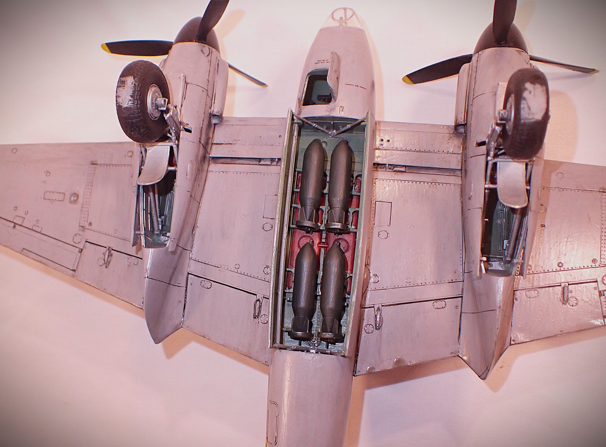 Many variations were built and used for many purposes, Fighter-Bomber, Light bomber, Pathfinder, Day Fighter, Night Fighter, Maritime strike aircraft for the RAF Coastal Command and Photoreconnaissance. The Bomber series were designated B, and the fighter variants F. Fighter Bombers were FB series. The NF variants were the night fighters, and the T variants were training aircraft. There were so many variants it is impossible to name and list them all. Most of the aircraft produced were the Mk.II and the Mk.VI. The production Mosquito F Mk.II were generally equipped with four Browning .303 in the nose and four Hispano 20mm cannon under the belly. The FB Mk.VI had the same but with the capability of two 250lb or 500lb bombs in the bomb-bay or eight RP-3 rockets, 4 under each wing. The B Mk.IV was a bomber with the nose being a Perspex blimp with a bomb aiming window. 263 were built as series II and could carry four 500lb bombs. It was one of the most heavily armed twin-engine aircraft of the war and loved by its crews.