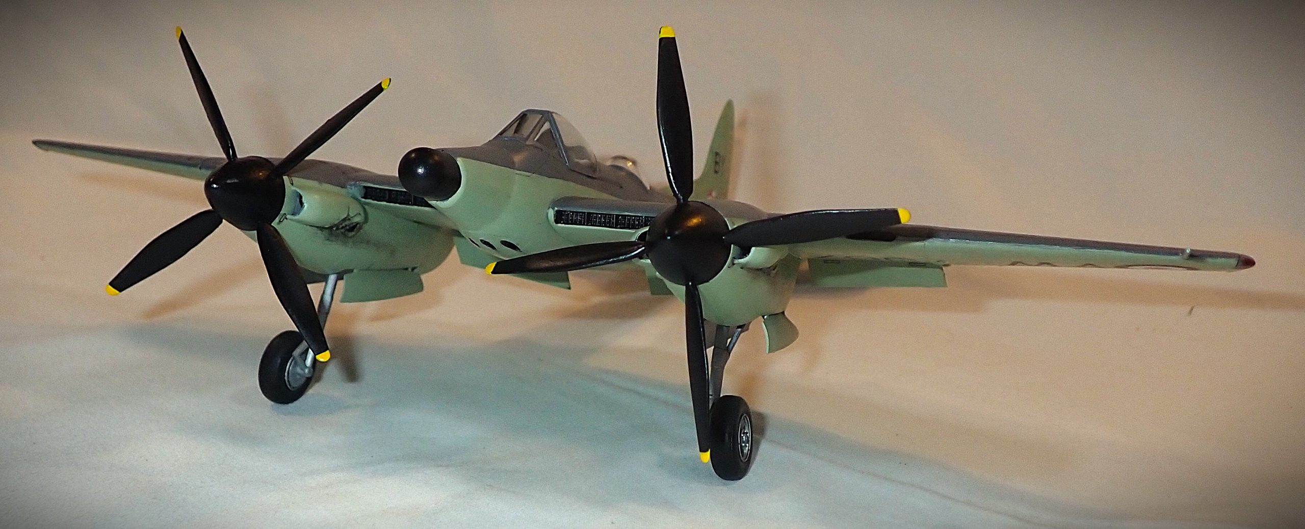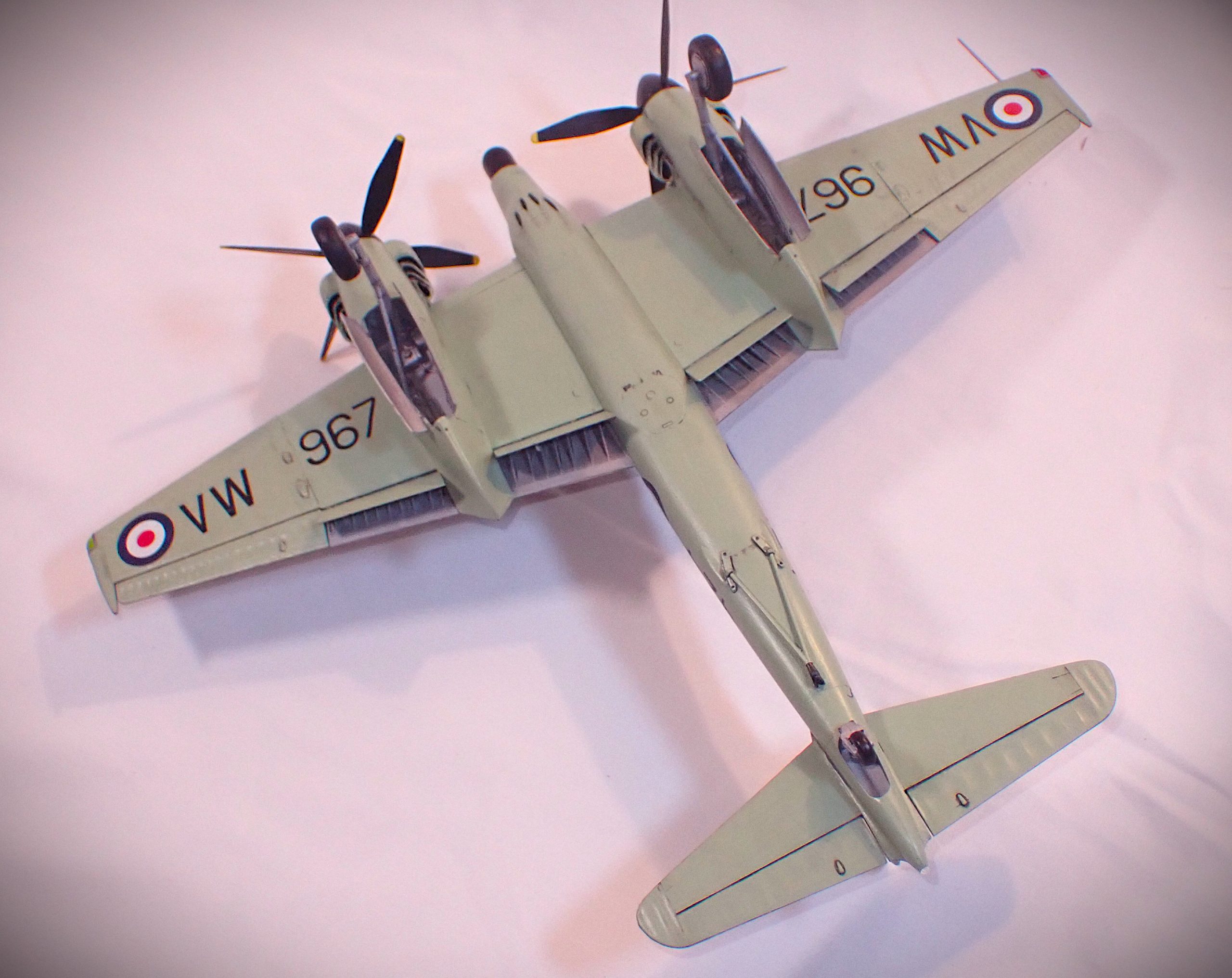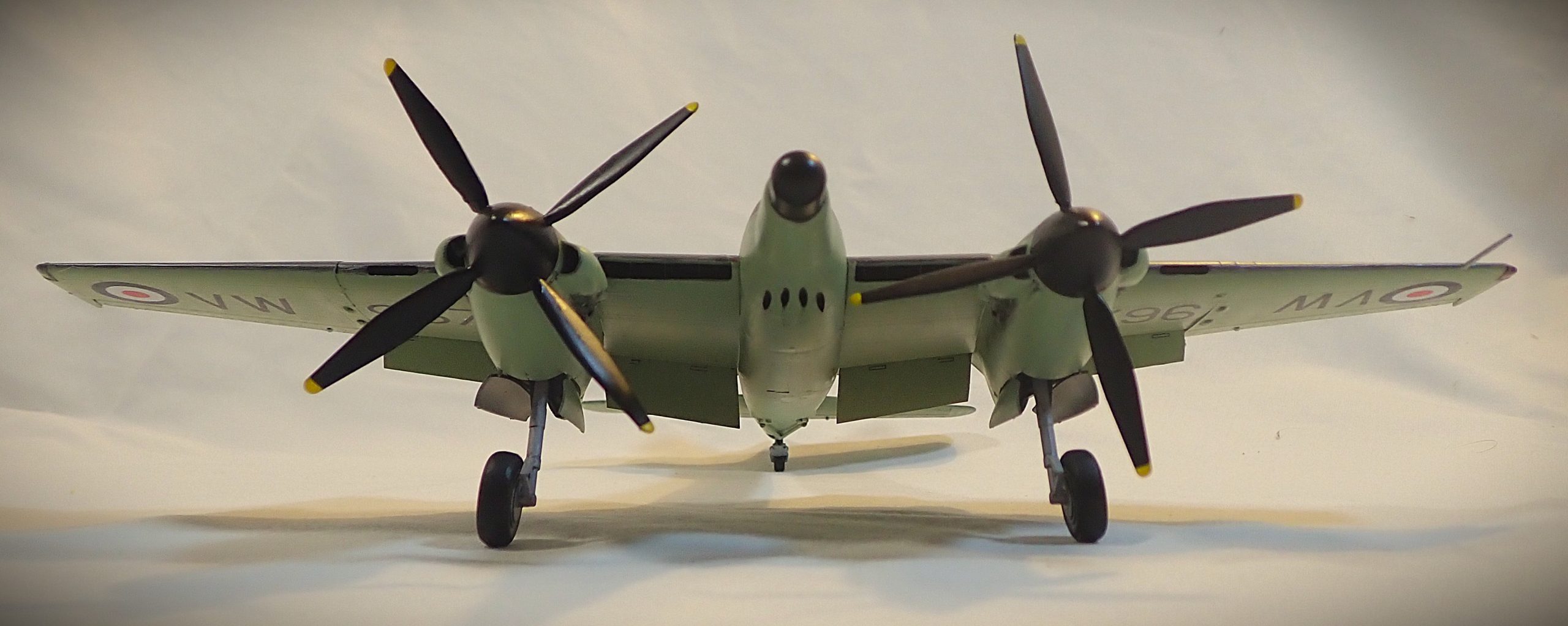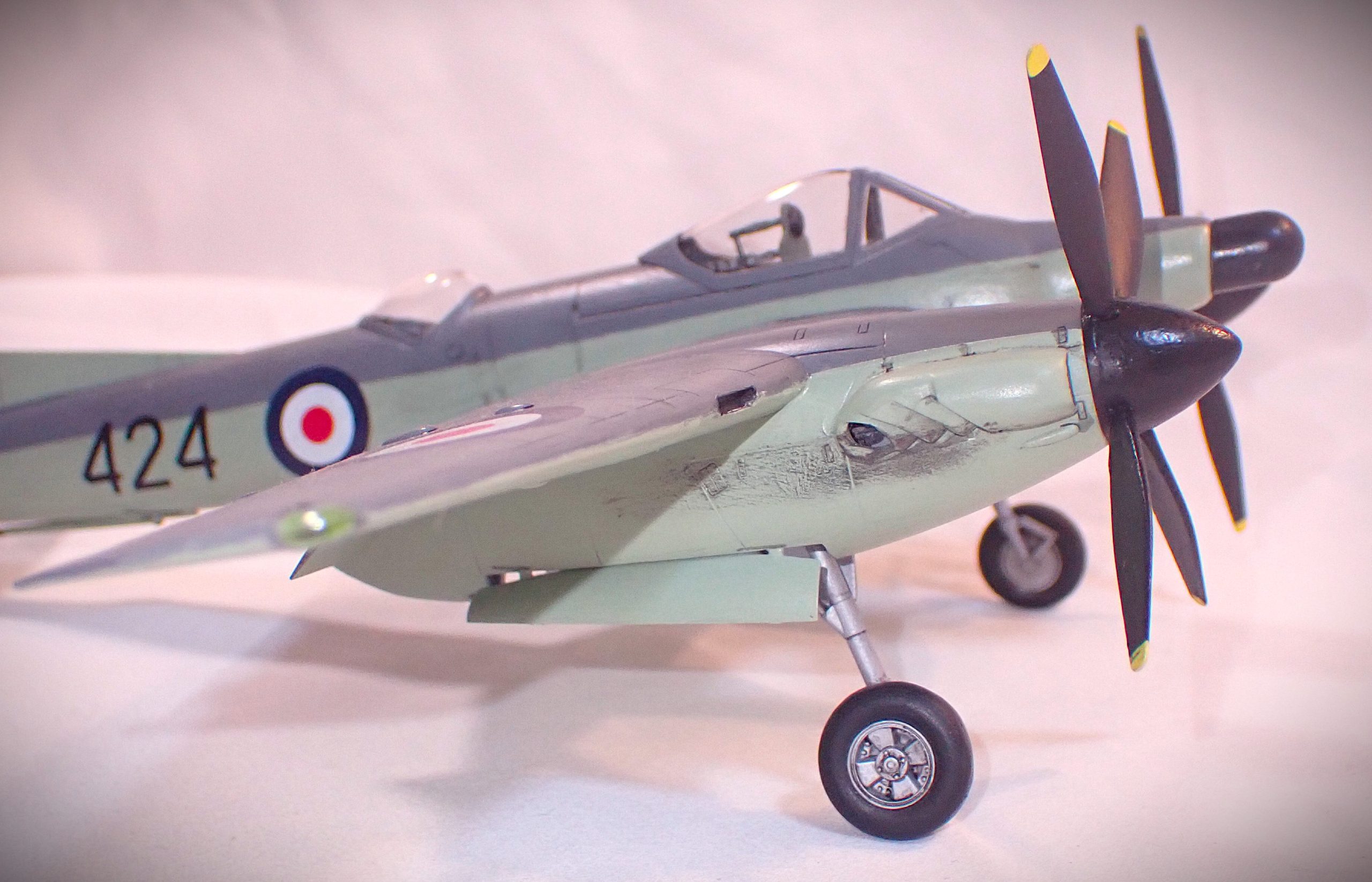 I chose to make the de Havilland Sea Hornet NF.21, VW967 424 of 809 NAS aboard HMS Vengeance in 1951. The aircraft is painted in the Dark Sea Grey upper with Sky lower colour scheme adopted by the FAA after the war. Cockpit green was still used for this type before the interior black of the jets.