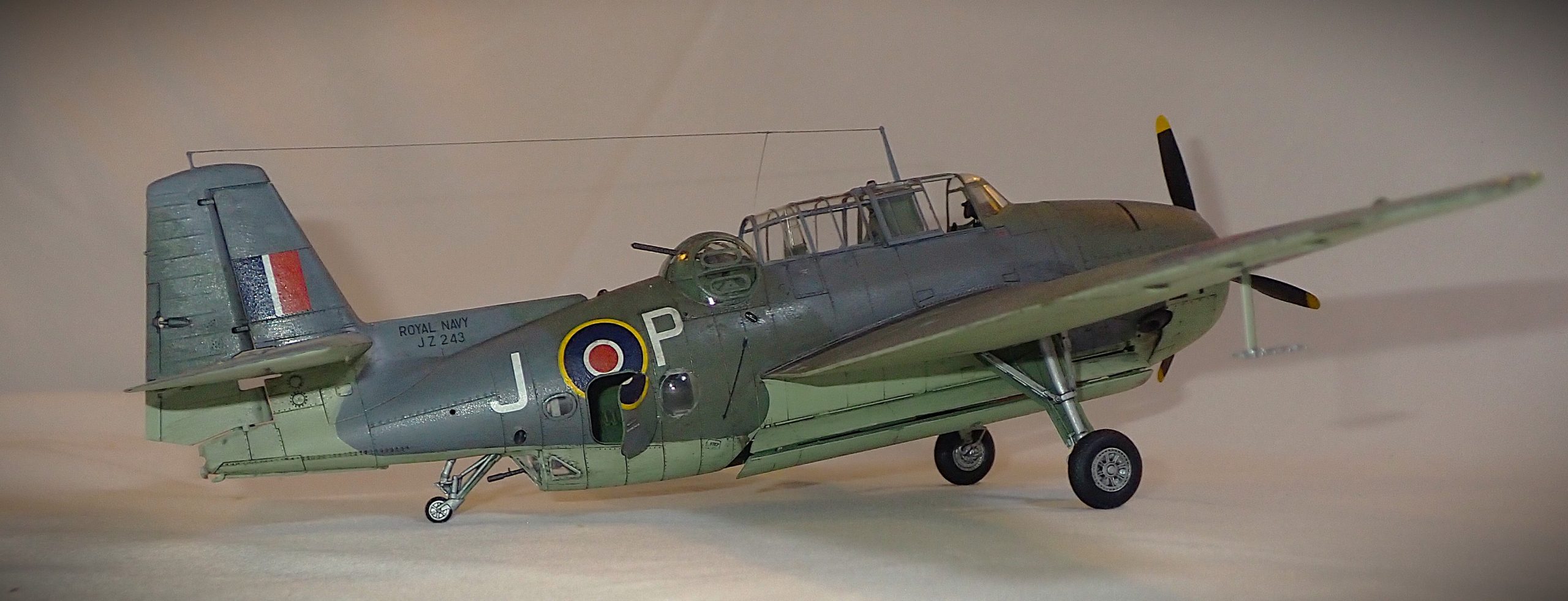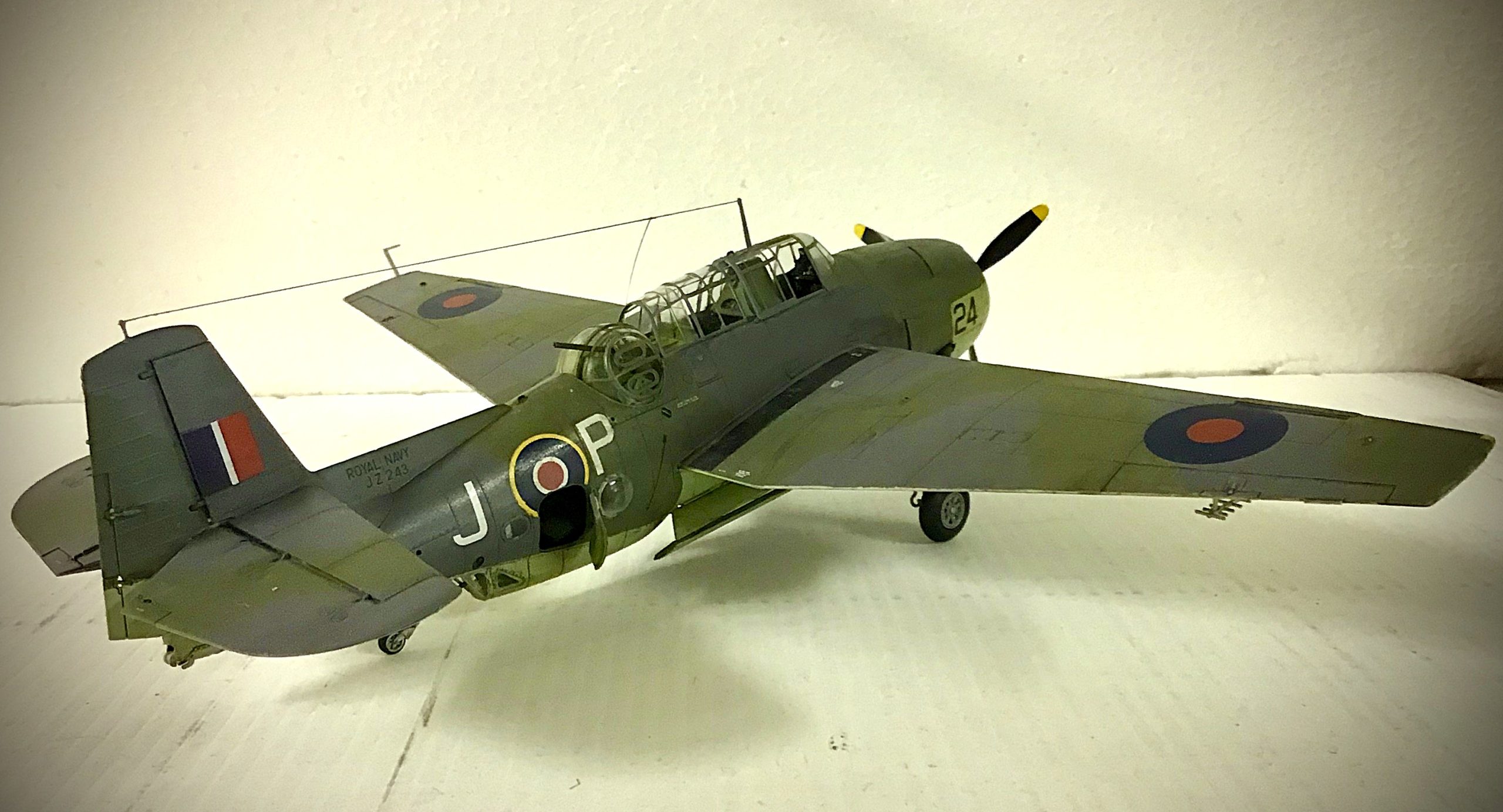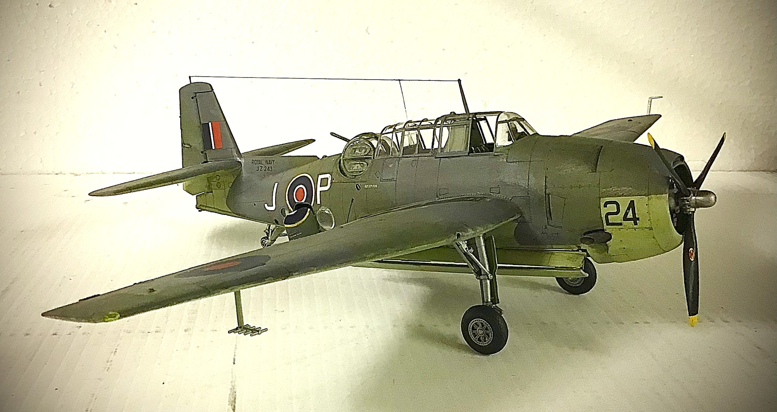 This was built almost OOB from a rather complex Academy kit. I say almost, I mean modified to FAA standards and configuration, mainly with crew layout. I had to scrape together a set of decals from my spares box as well. It represents a Tarpon I JZ243 J-P 24 of 846 NAS assigned to escort carrier HMS Trumpeter in 1944. The fate of the individual aircraft is unknown.