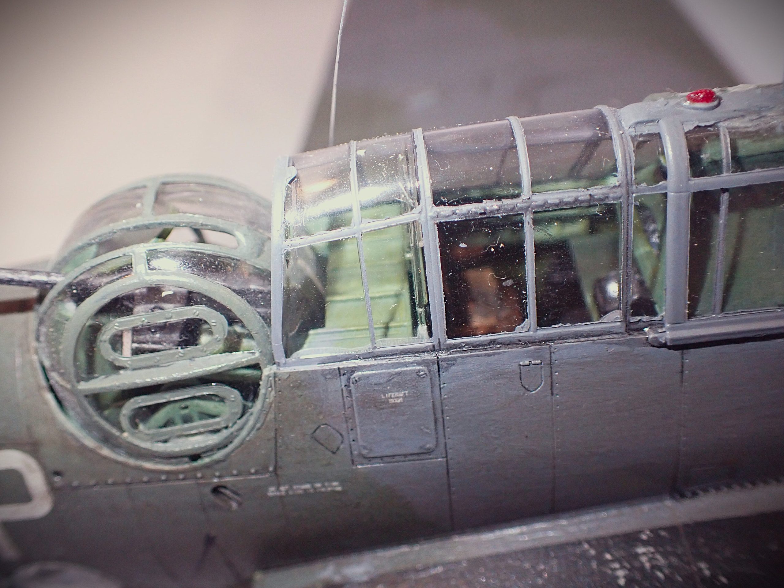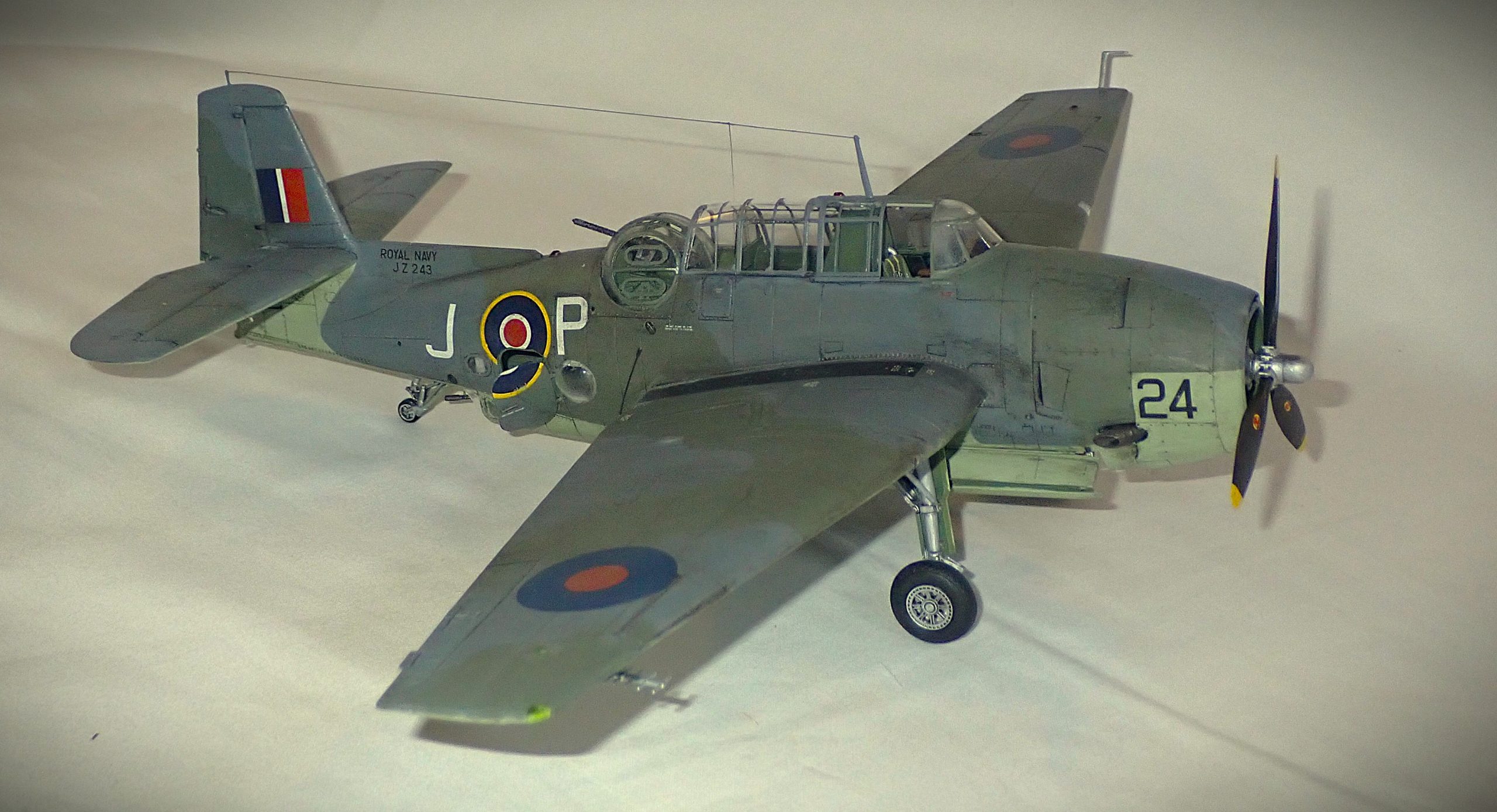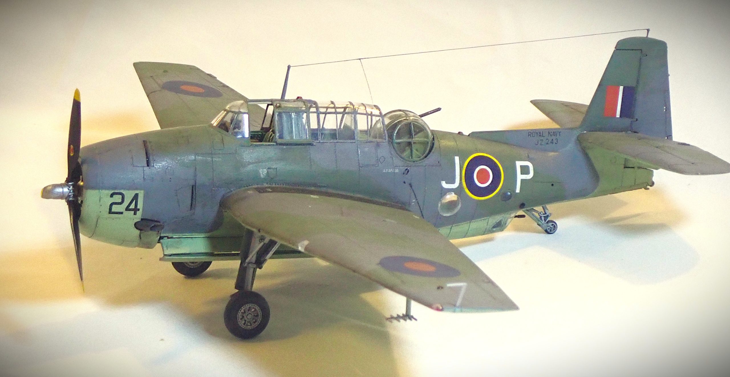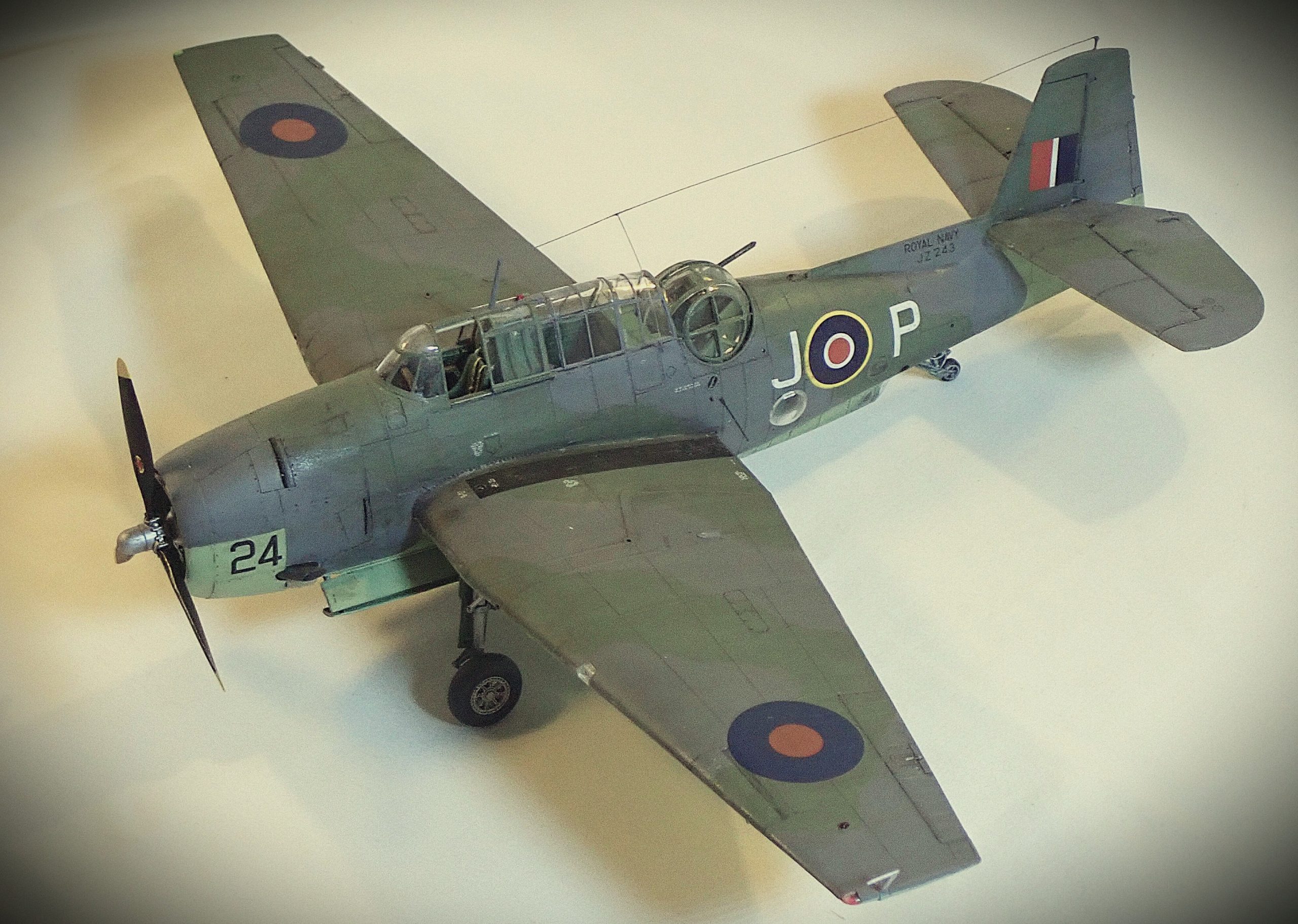 This was built almost OOB from a rather complex Academy kit. I say almost, I mean modified to FAA standards and configuration, mainly with crew layout. I had to scrape together a set of decals from my spares box as well. It represents a Tarpon I JZ243 J-P 24 of 846 NAS assigned to escort carrier HMS Trumpeter in 1944. The fate of the individual aircraft is unknown.