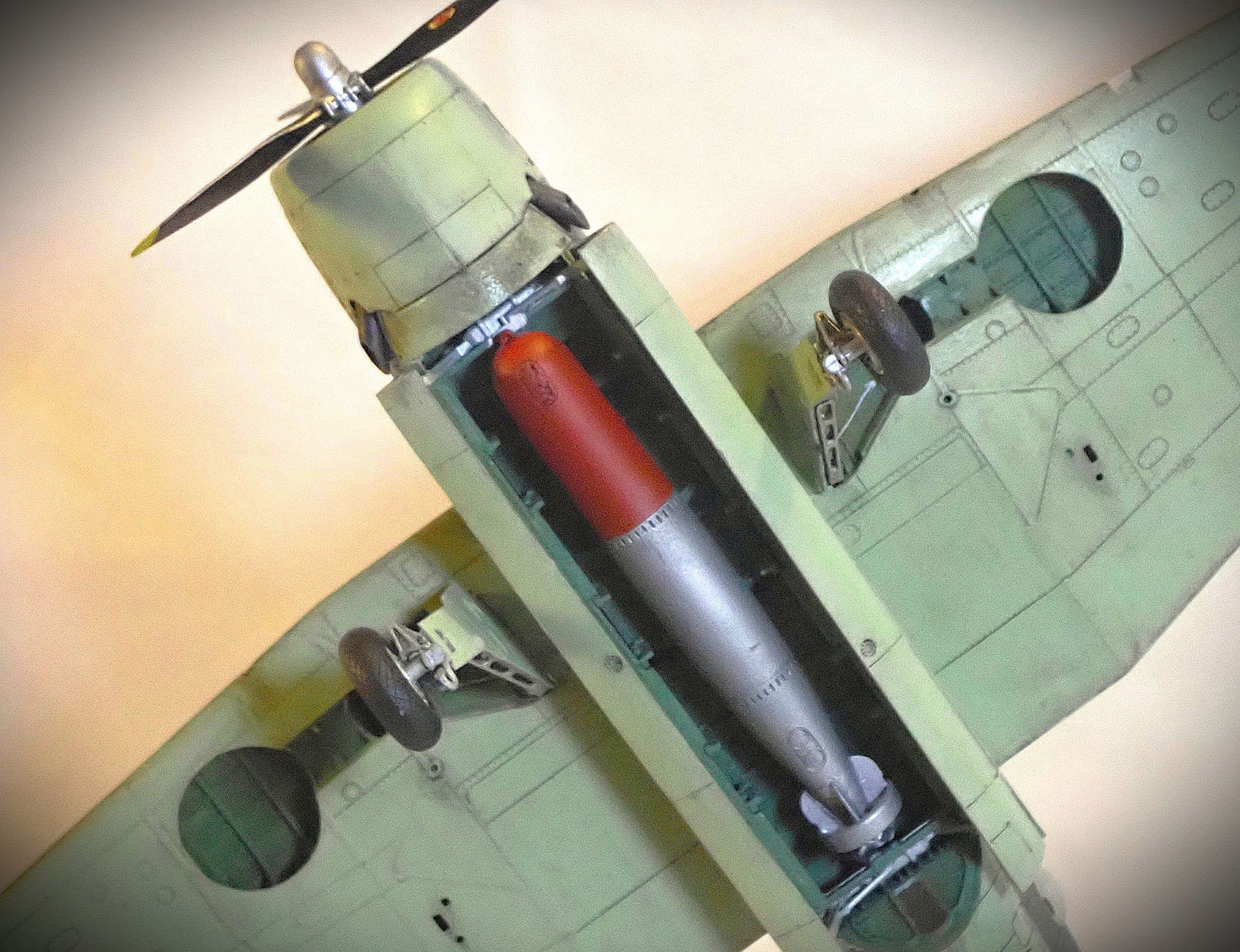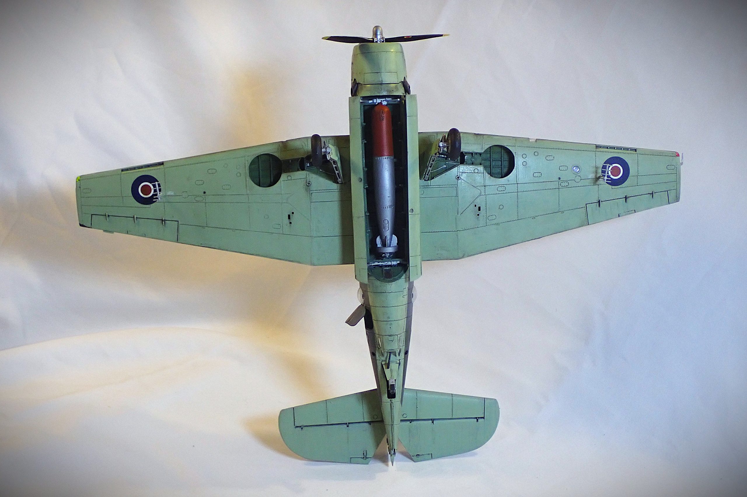 The Grumman TBF Avenger is a specifically designed carrier-borne single-engine mid-wing torpedo bomber. It had a crew of three, pilot, navigator/radio operator and gunner. It was armed initially with one .303 Browning in the dorsal turret, a .5 Browning in the nose and a third in the ventral observation window just below the tail section. Later the nose gun was removed in favour of two forward firing .5 Browning in the wings and a second added to the turret. The large bomb bay could carry a Mk.II torpedo or 2,000lb of bombs in various configurations.