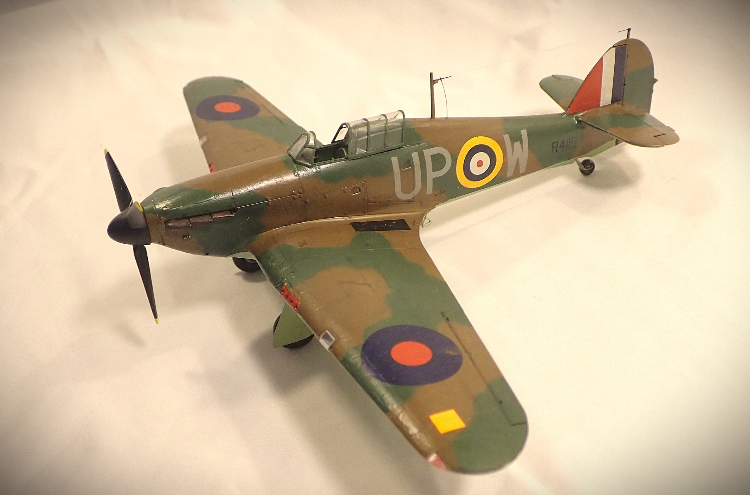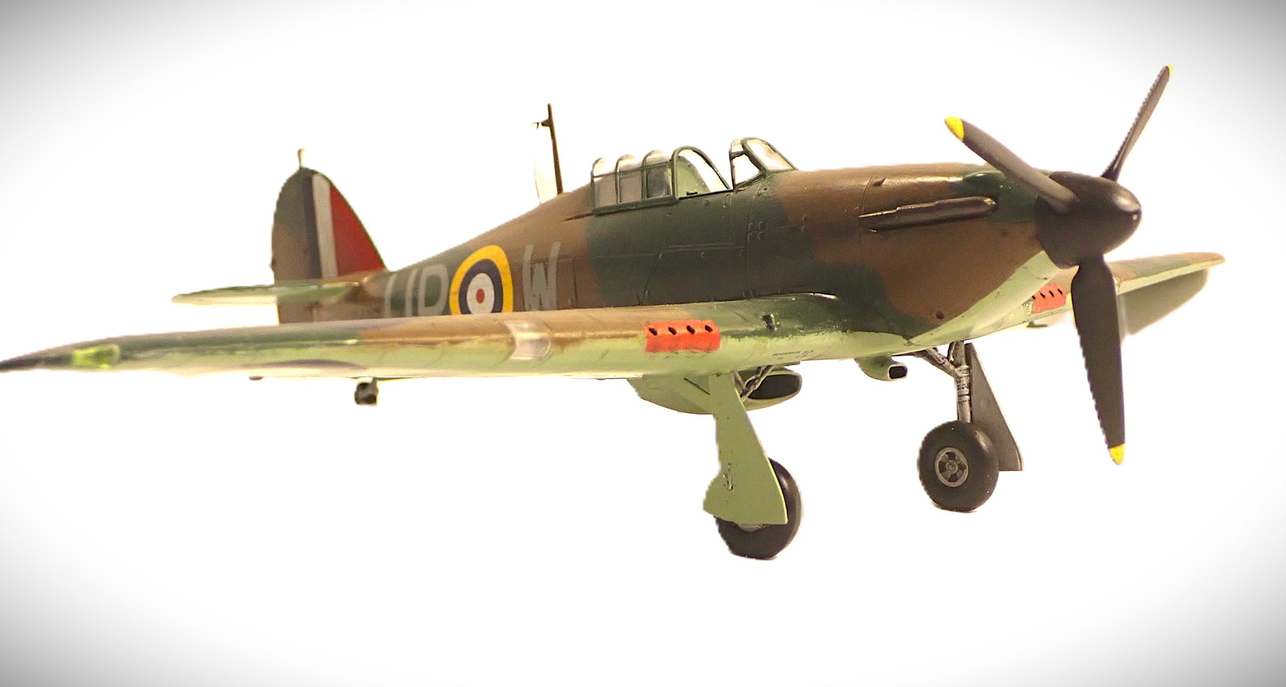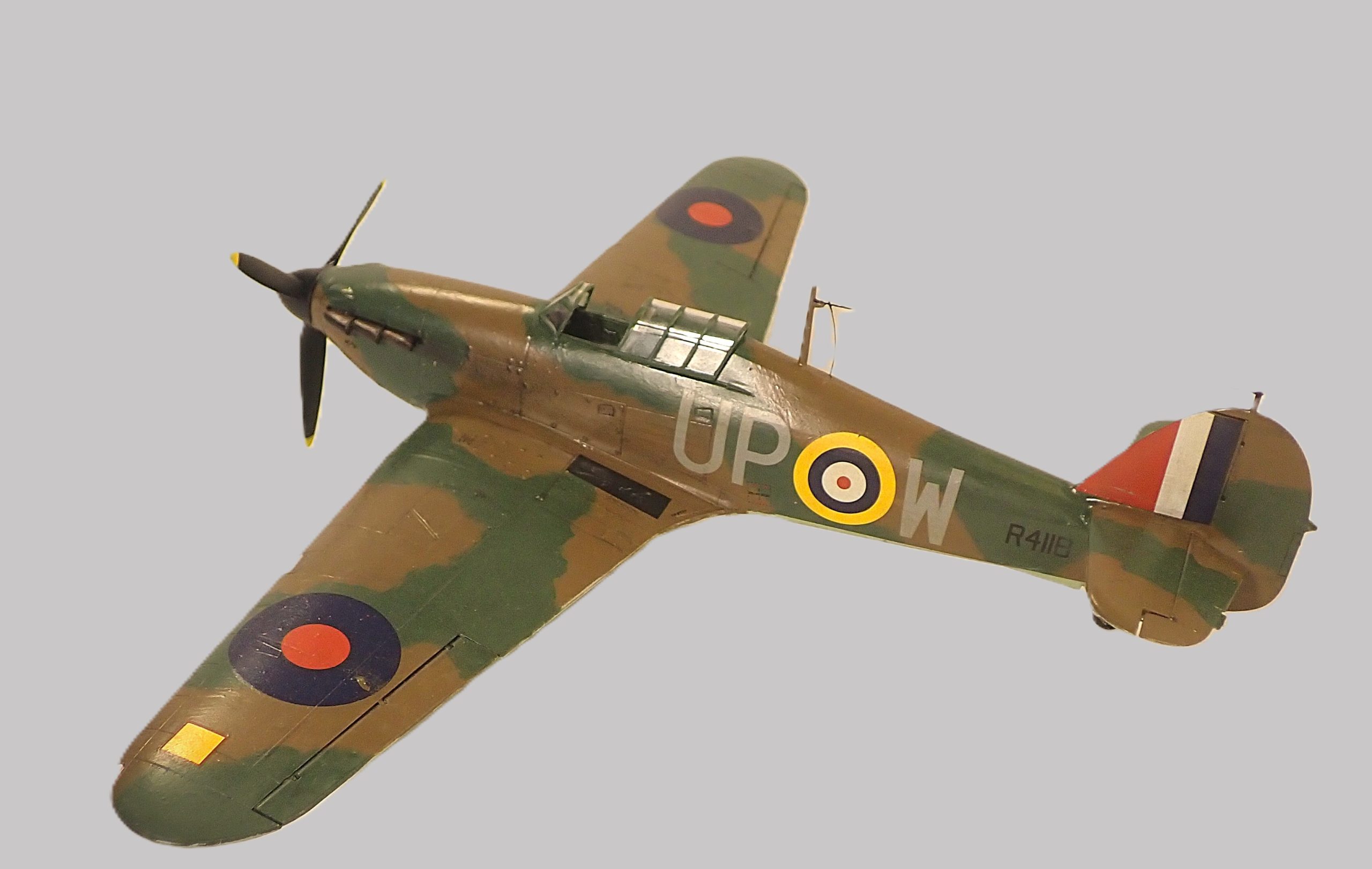 The Hurricane was produced in far greater numbers than its counterpart the Spitfire and was the predominant RAF aircraft at the beginning of the conflict in 1939 being deployed with 16 squadrons with another 2 in the process of converting to the new aircraft. The Hurricane, in various marks, was to serve with the RAF and FAA throughout the war gaining distinction in all theatres of the conflict, notably in the Battle of Britain, defence of Malta, North Africa and the defence of Singapore.