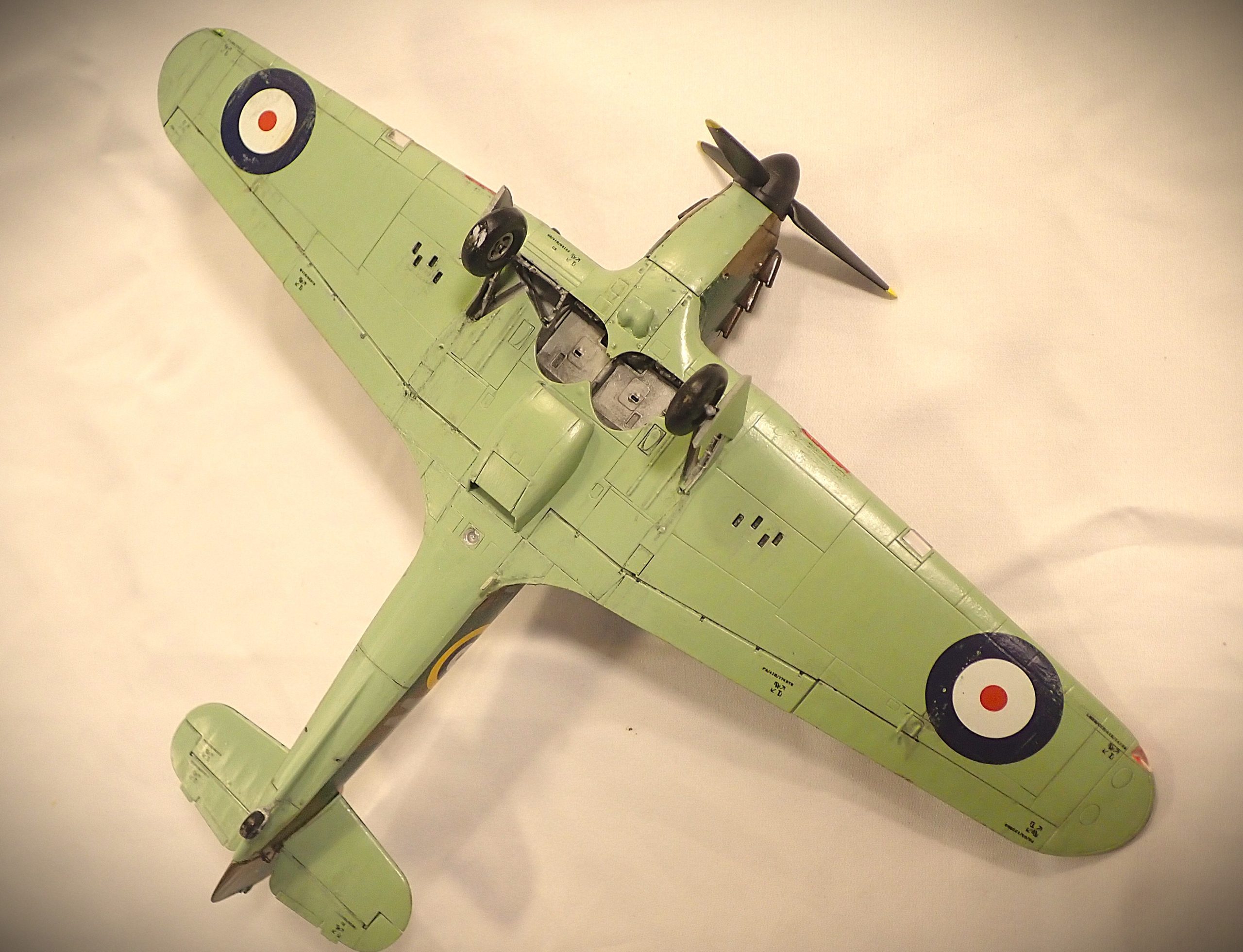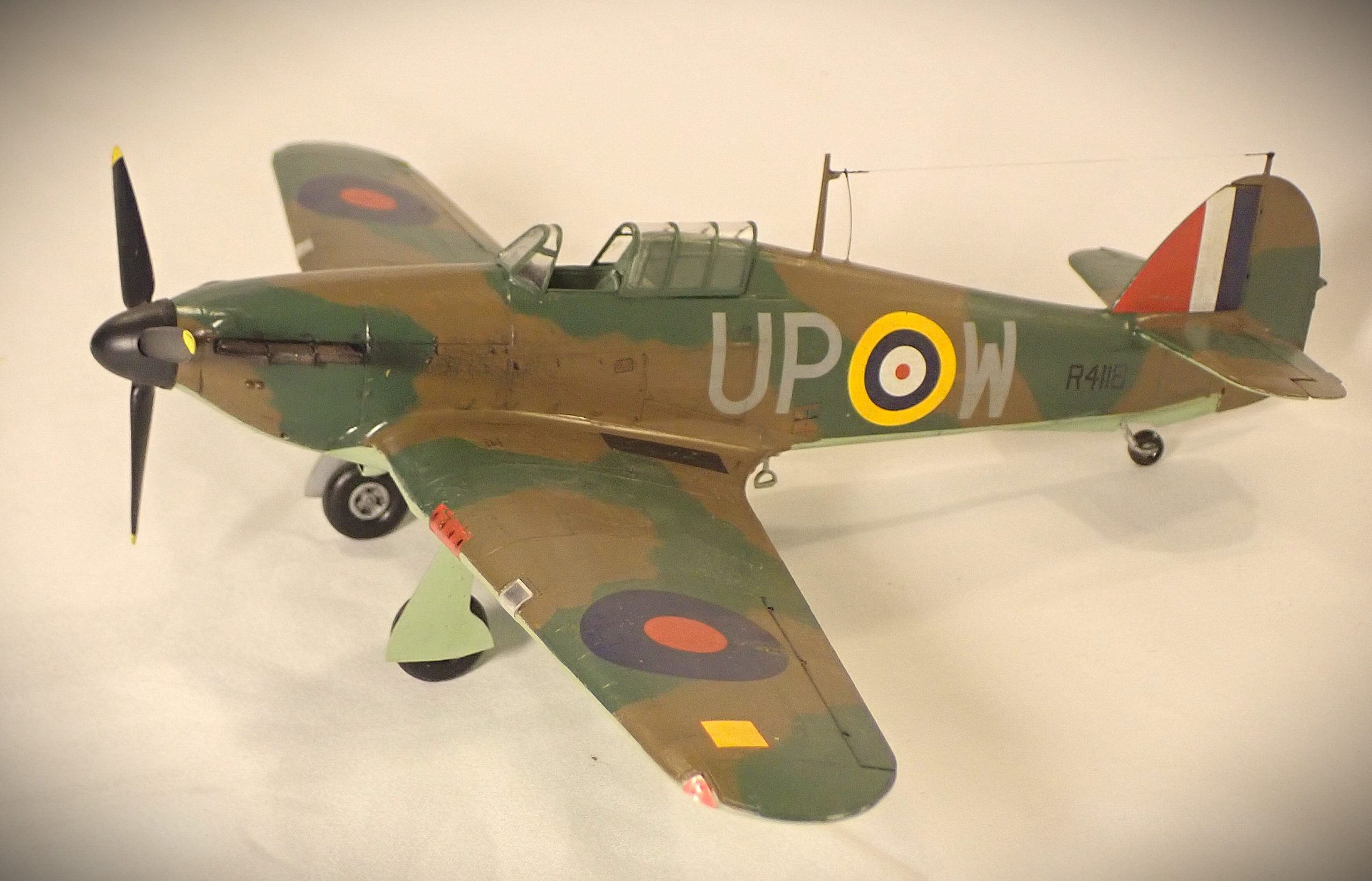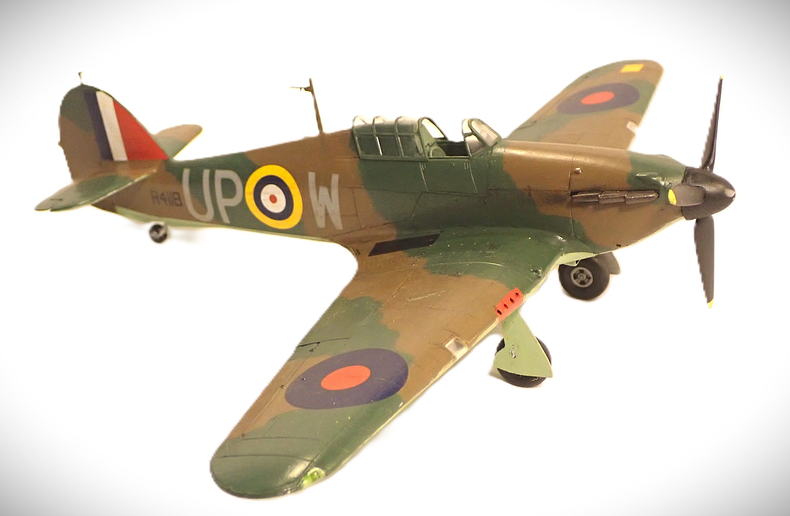 The Hurricane was produced in far greater numbers than its counterpart the Spitfire and was the predominant RAF aircraft at the beginning of the conflict in 1939 being deployed with 16 squadrons with another 2 in the process of converting to the new aircraft. The Hurricane, in various marks, was to serve with the RAF and FAA throughout the war gaining distinction in all theatres of the conflict, notably in the Battle of Britain, defence of Malta, North Africa and the defence of Singapore.