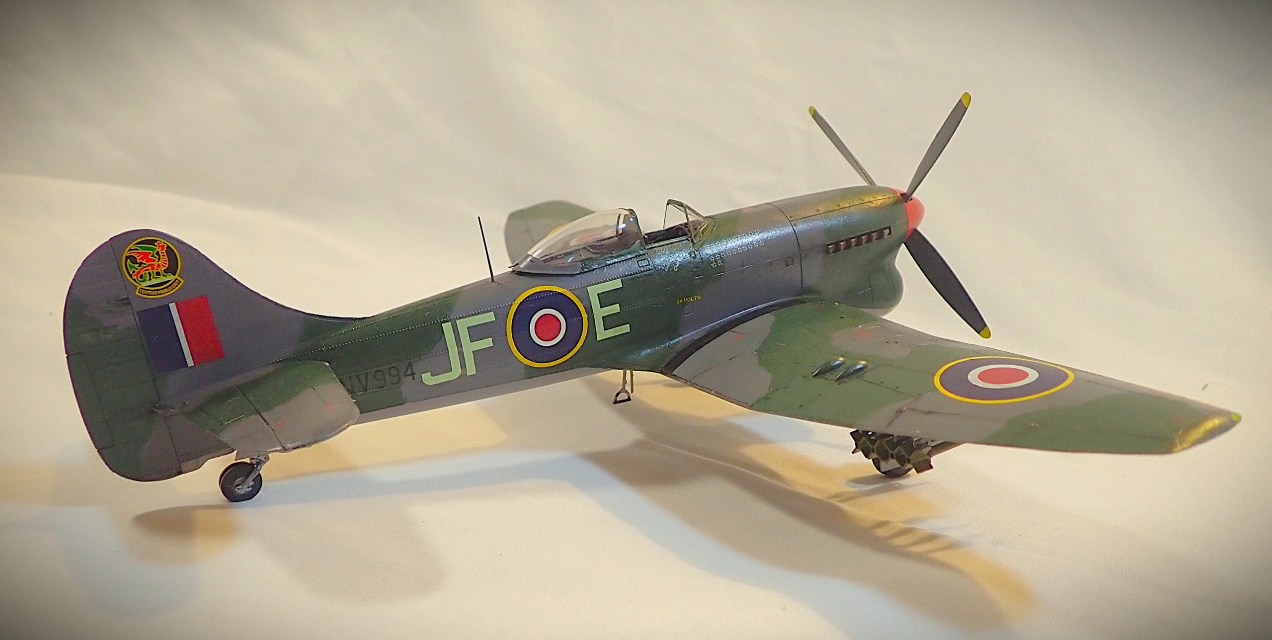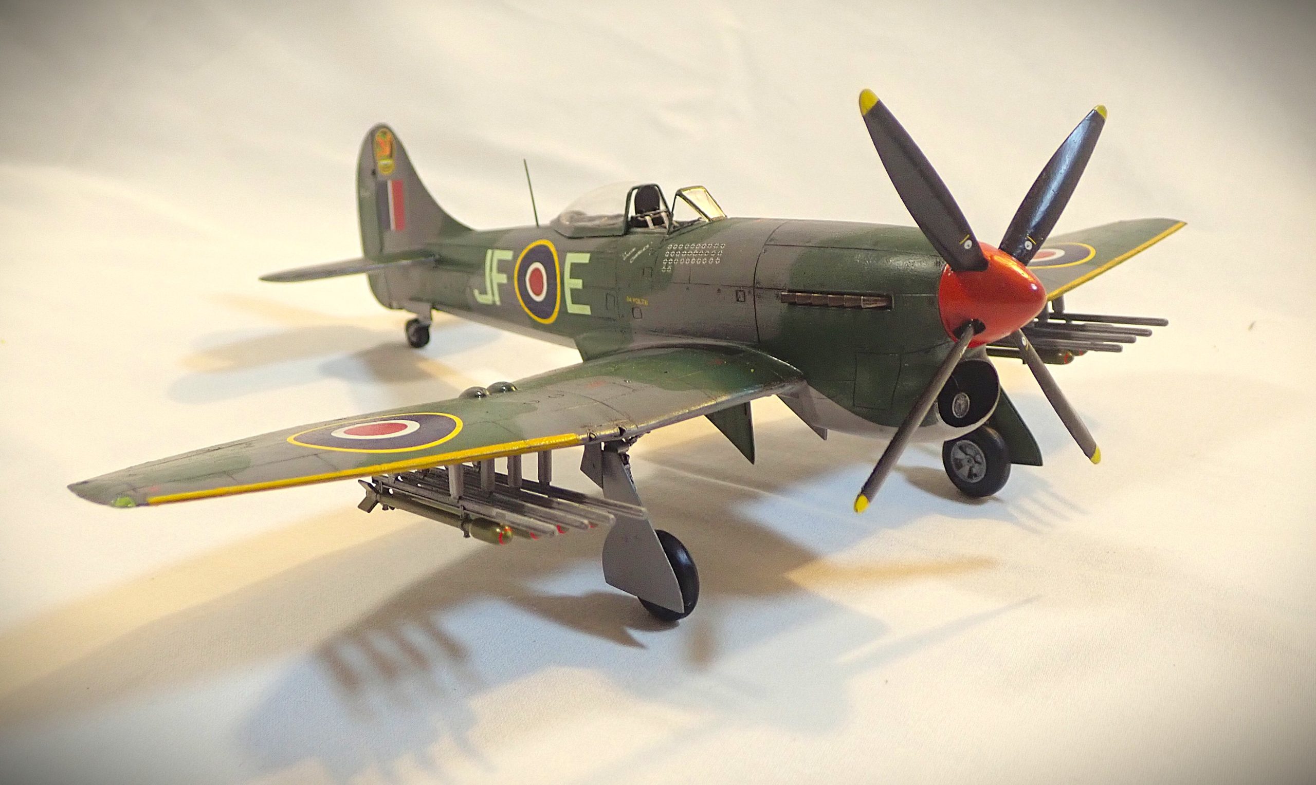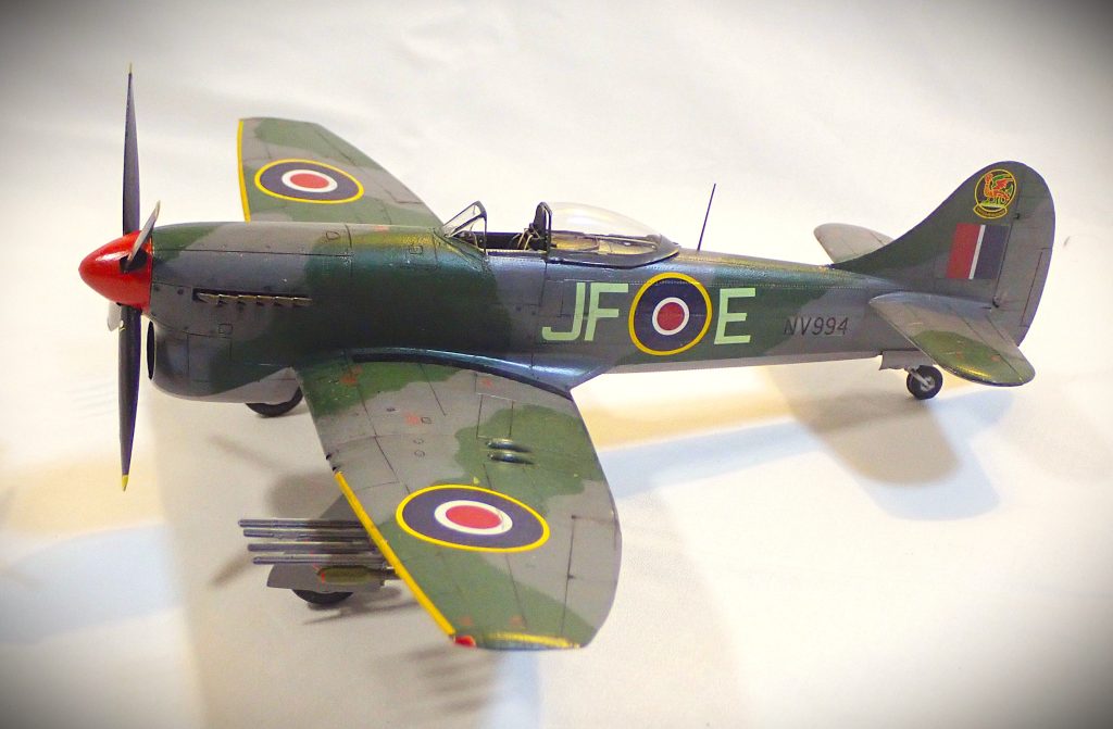 Tempests were the star of RAF Fighter Command during the last two years of the war. They were operationally successful in many aspects of air combat being able to match the new German jet fighters late in the conflict, mainly the Messerschmidt 262, although the ‘Rat Scramble’, shooting them down when they were landing, approach worked initially the Germans responded by installing 150 anti-aircraft guns around the Me262 base. In one raid nine Tempests were lost, therefore, ground attacks were prohibited. Generally, the air combat success ratio was 8:1 scoring 239 victories and with over 40 V-1’s destroyed.
