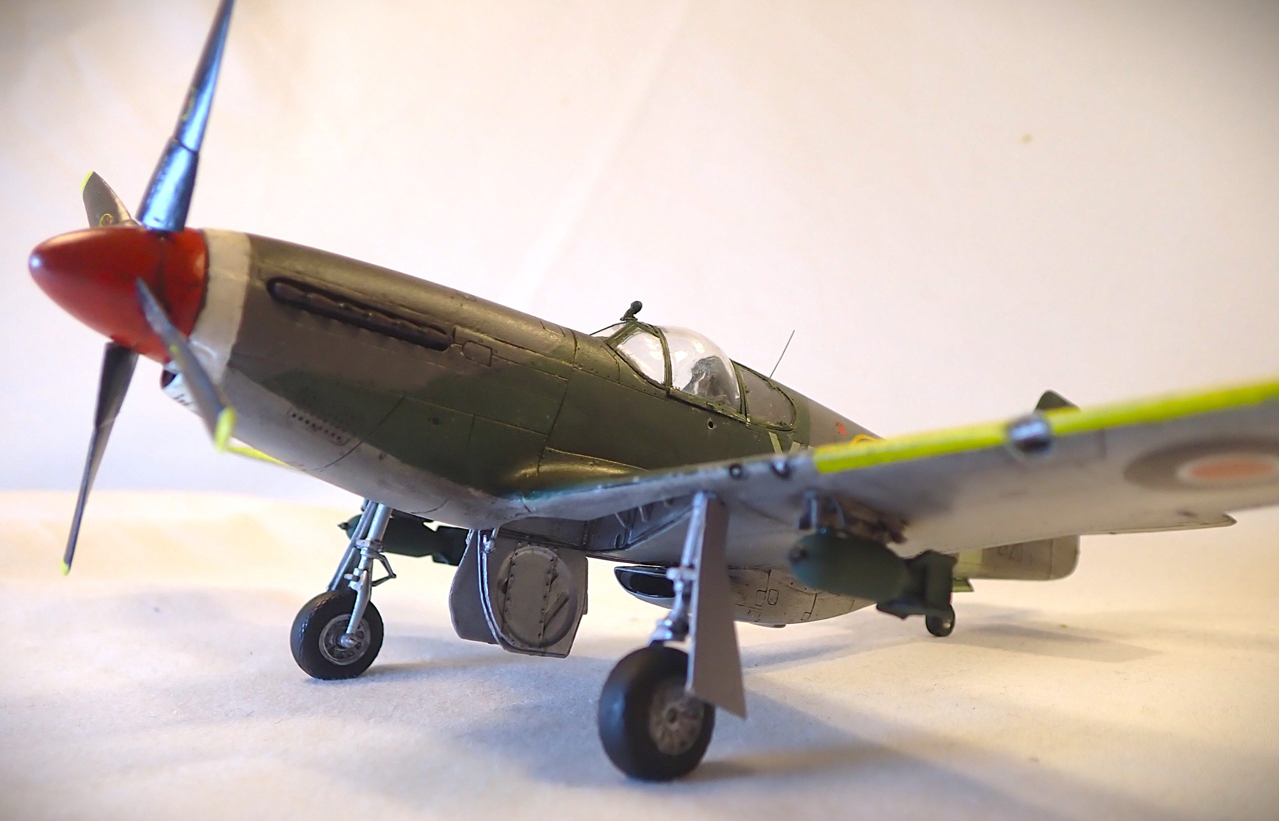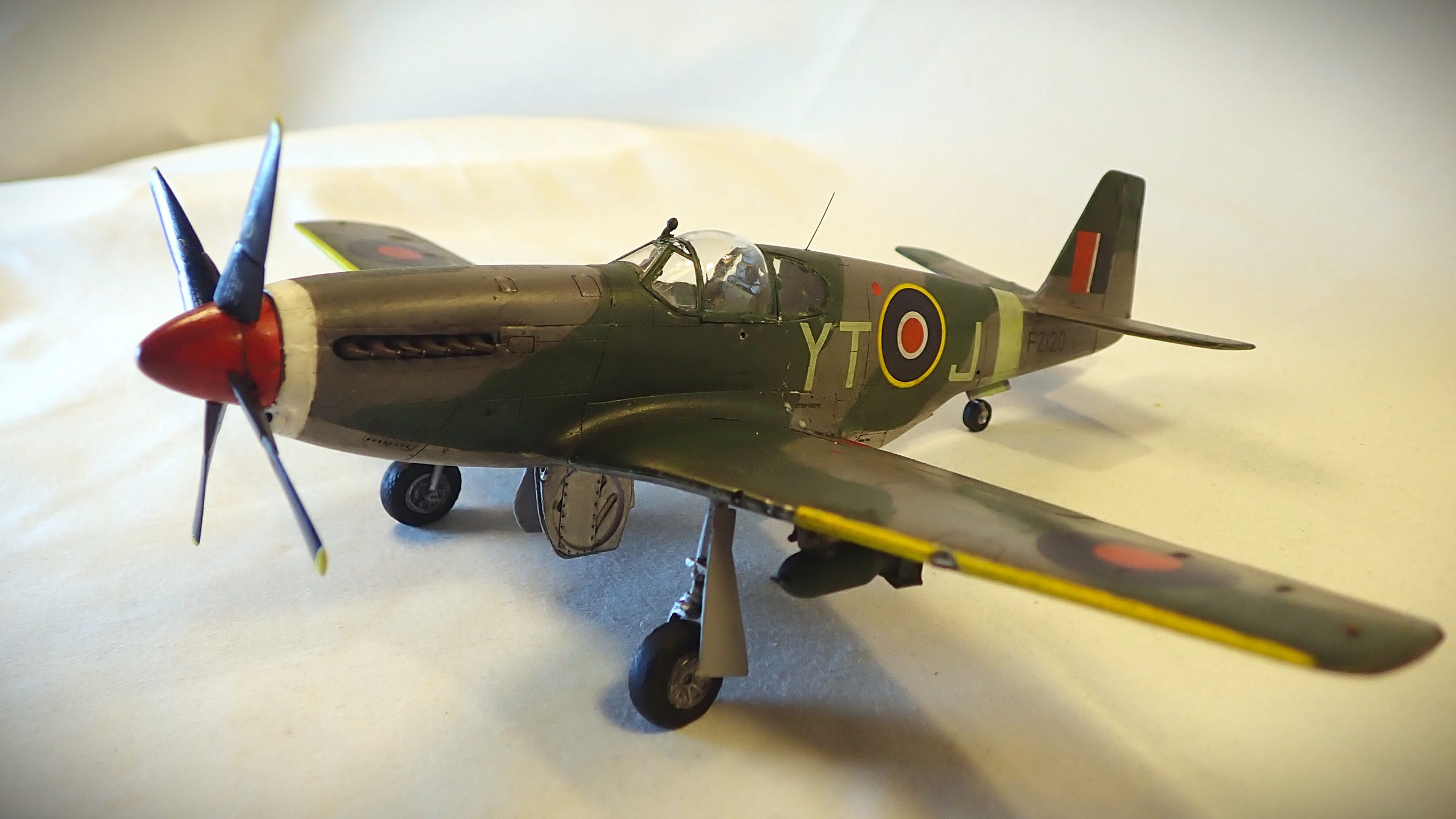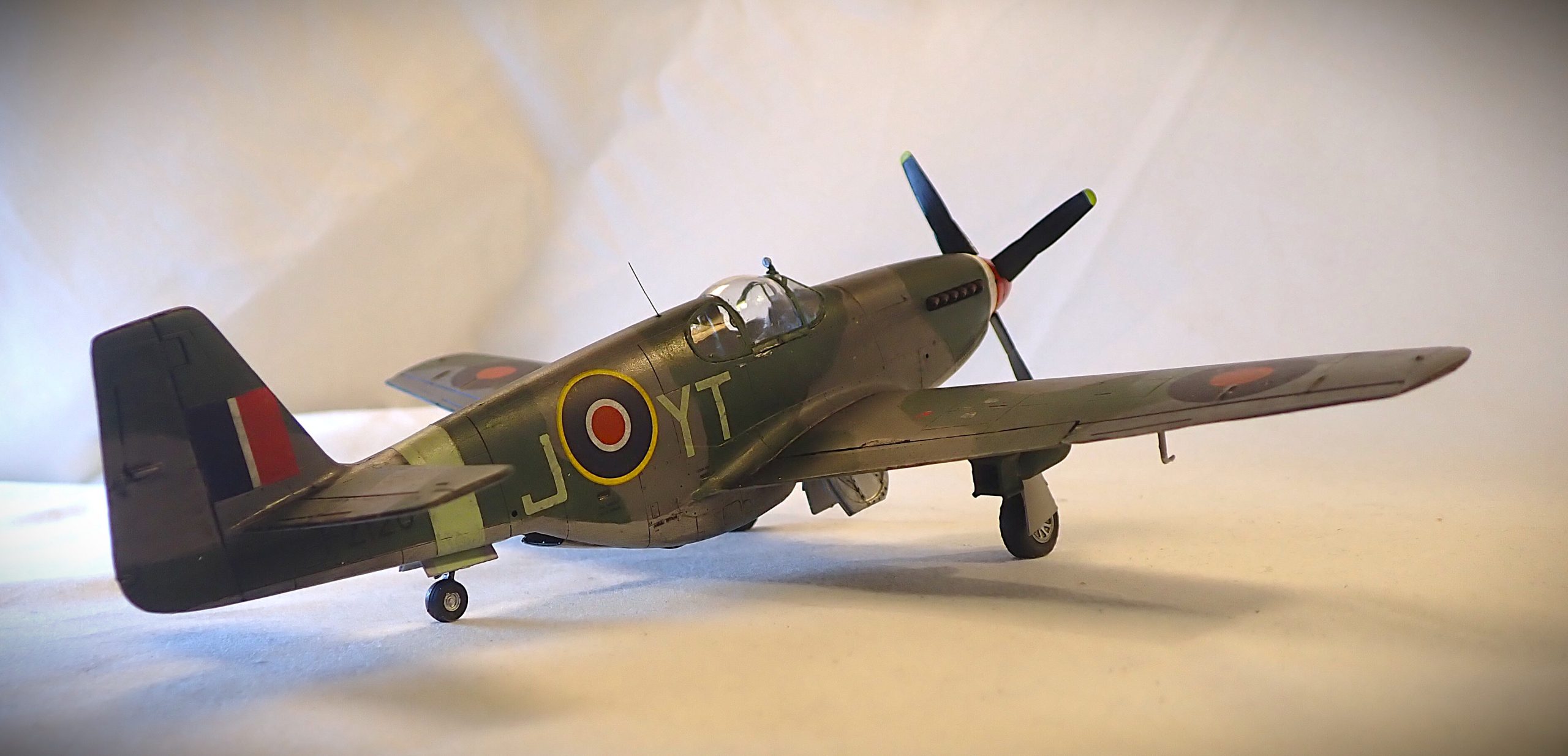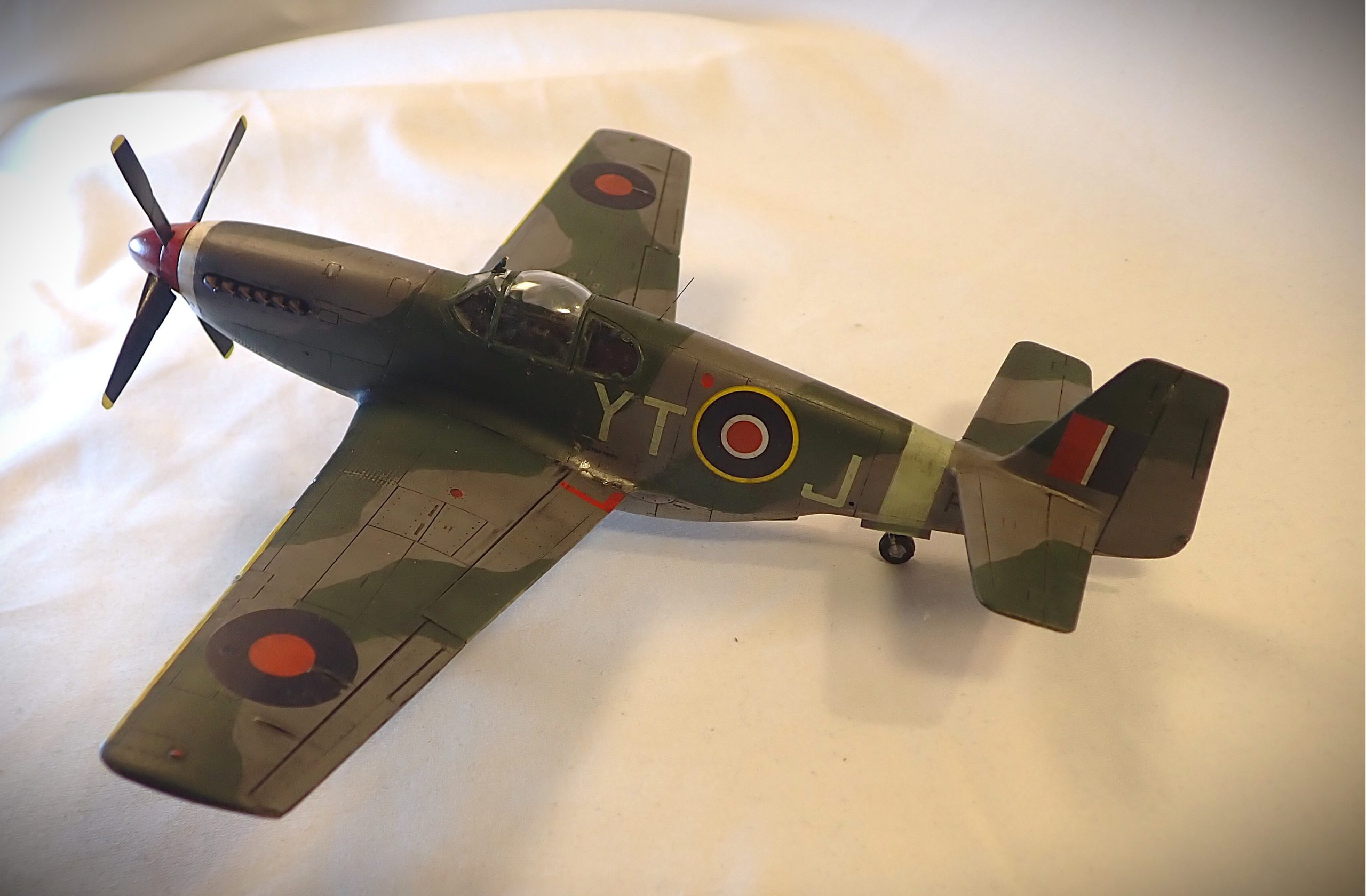 In May 1942 a project called the Mustang X came into being with experiments to fit a Rolls-Royce Merlin 61 to the Mustang airframe. In the end the Merlin 65 series was used with two speed supercharger giving increases in altitude and speed. Tests were completed by October and proved that the performance was substantially better with operational ceiling way above that of the Allison. A contract was issued for Packard to replicate the Merlin in the V-1650-3 engine. Two NAA Merlin prototypes were ordered and became known as the XP-51B with a top speed of 441mph and service ceiling of 42,000 ft. The centre of gravity was affected with the heavier engine and slightly longer forward section, so the wings were moved forward. This also allowed for a central fuel tank to be fitted behind the cockpit vastly improving range. The carburettor intake was moved to below the nose with the four .50 Browning being retained. Hard points allowed for external bombs up to 2,000lb or 8 rockets or drop tanks depending on the type of mission.