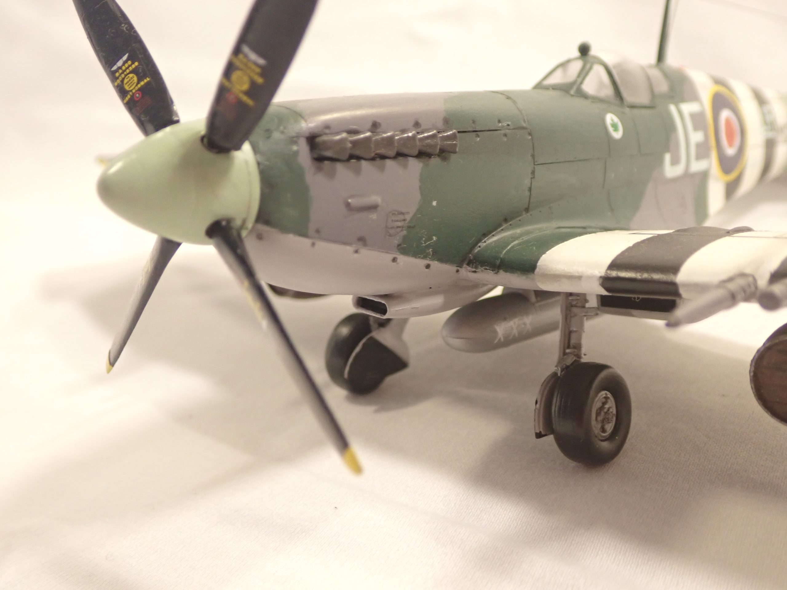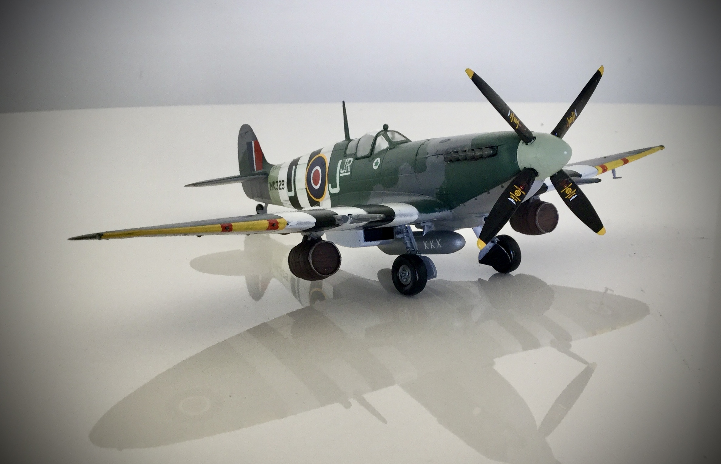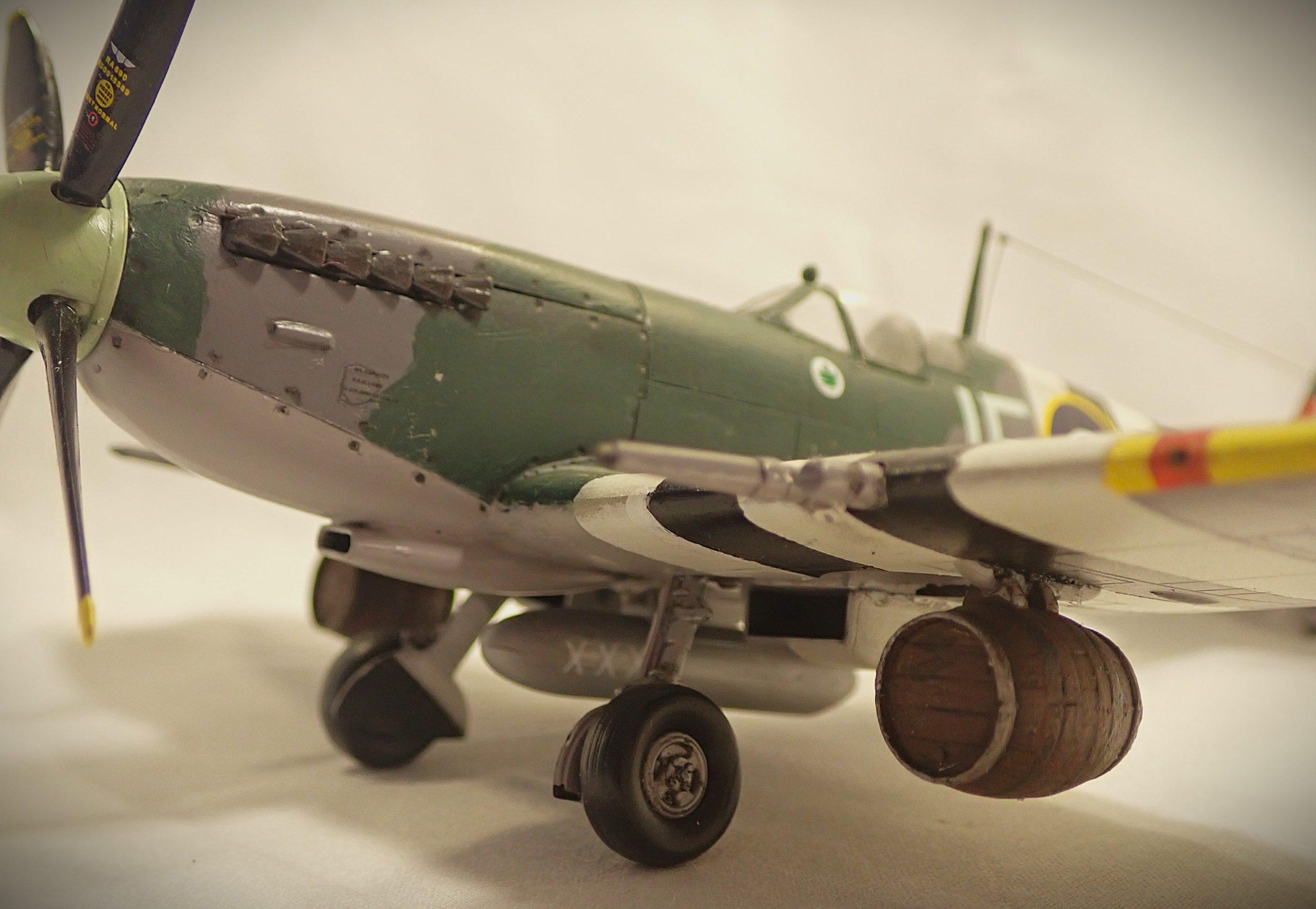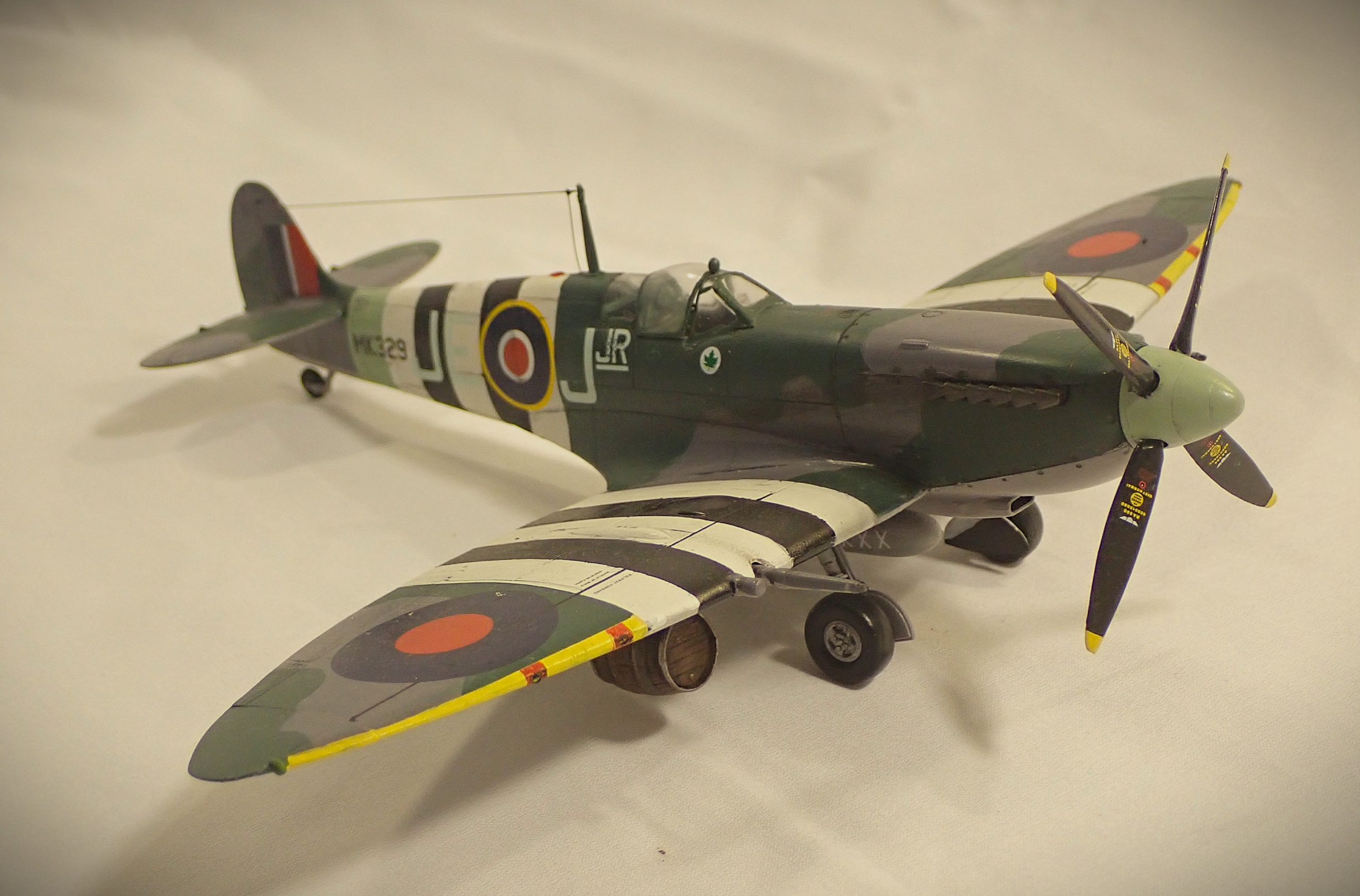 Many Mk.IX’s were converted to Photo Reconnaissance(PR) and Fighter Reconnaissance(FR). All the PR Mk.IX aircraft were stripped of all armament and painted an overall PRU blue and used the d wing variant. The FR types were armed and used for low altitude “Dicing” missions in army support. 16 Squadron famously painted their aircraft a light pink colour, surprisingly good camouflage at dawn and dusk under cloud cover, to photograph the Arnhem area before Market Garden.