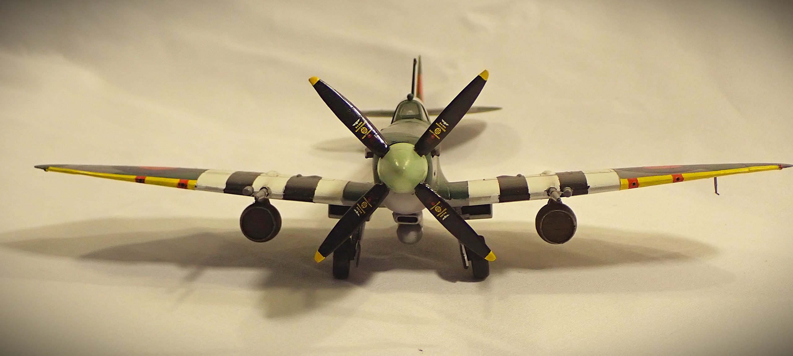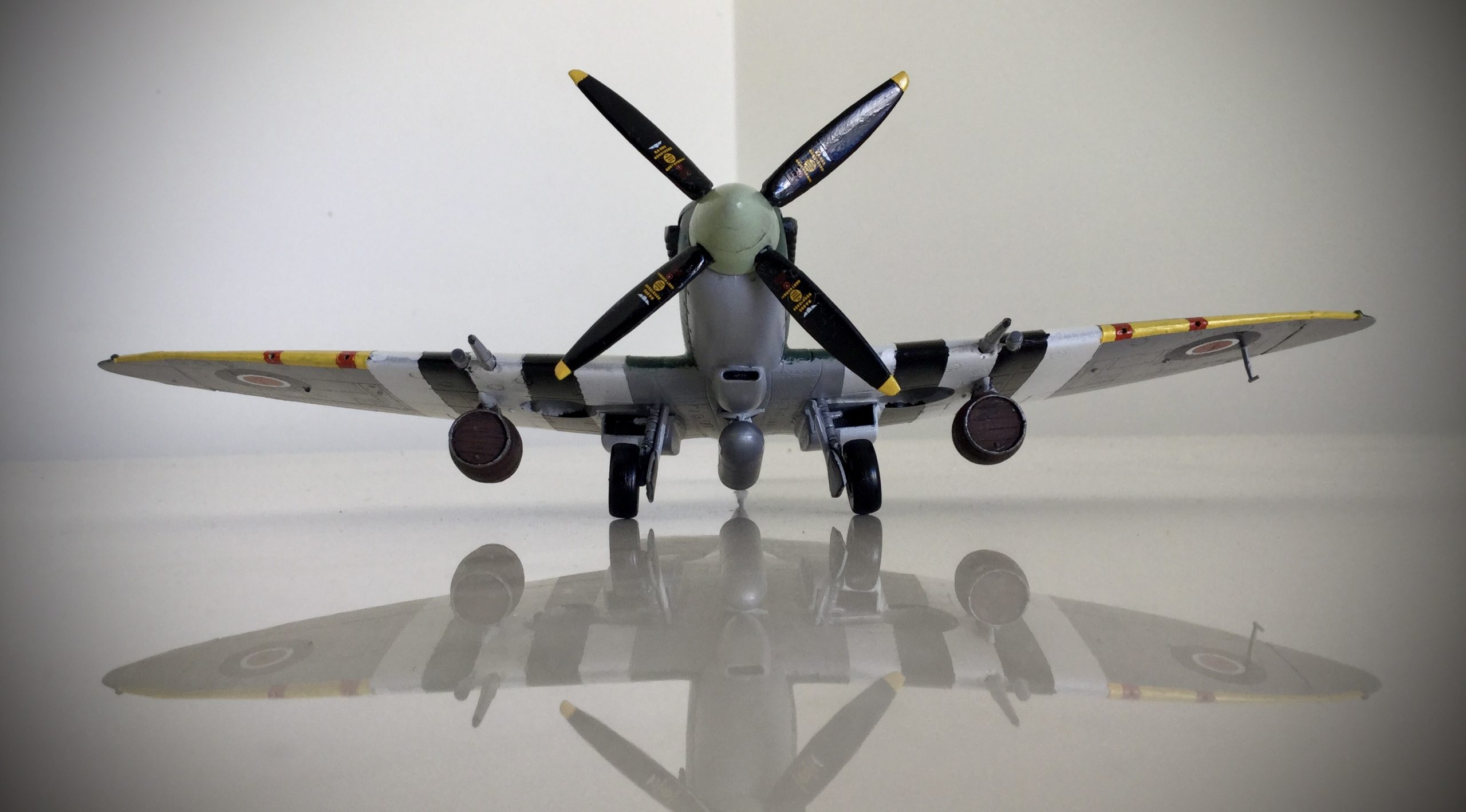 Late production Mk.IX’s included the bubble canopy designed for the late production Mk.VIII with the cut back fuselage and clipped wing. Most of these were used post war in South Africa and Korea.