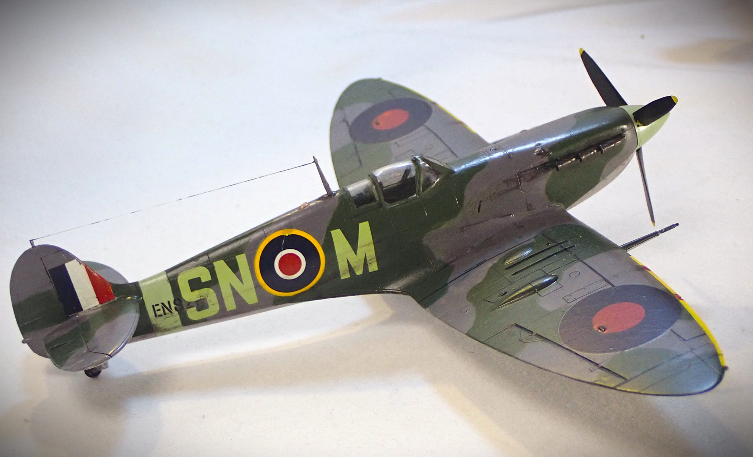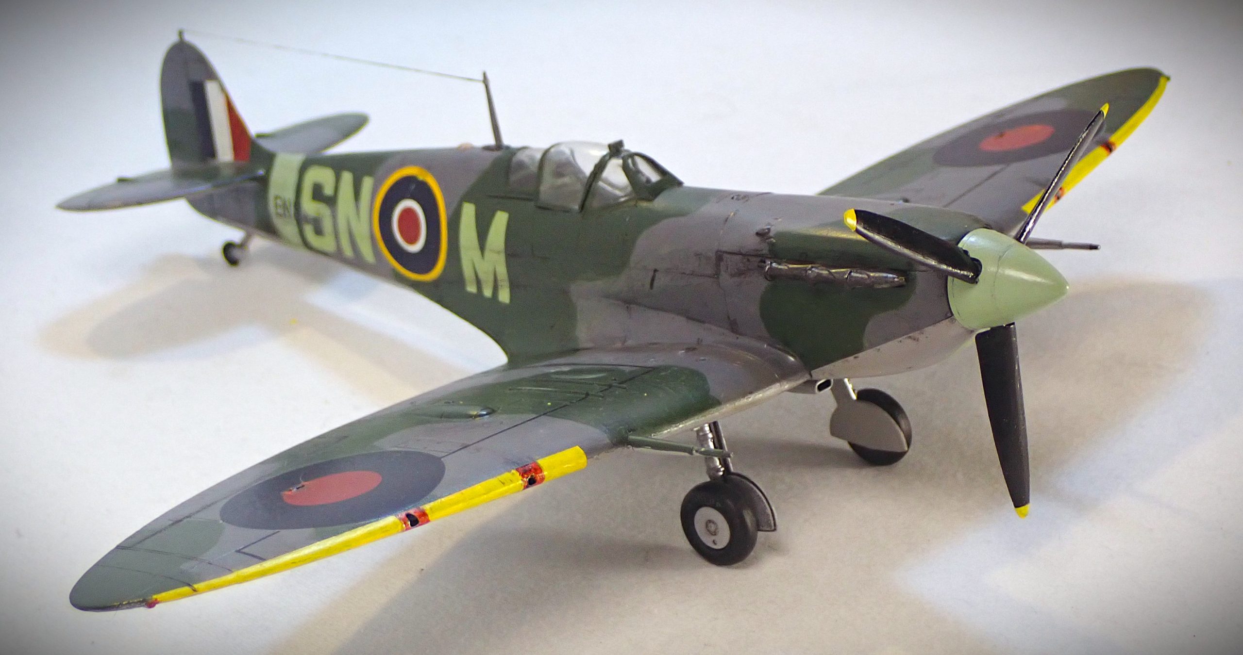 After the advent of the Spitfire Mk.I & Mk.II in 1937 work began on improvements immediately. There was a planned Mk.III using the new Merlin XX, but only one was completed. The more advanced Spitfire Mk.V powered by the Merlin 45 initially was the next production model which entered service in three versions, MK.Va, Mk.Vb and Mk.Vc. The last letter referring to the wing configuration. The slightly redesigned wing was interchangeable and differed only with the gun arrangement. The ‘a’ wing was the standard four Browning .303 in each wing, the ‘b’ wing was one Hispano 20mm cannon inboard and two Browning .303 with the ‘c’ wing being equipped with two Hispano 20mm cannon in each wing. The Mk.Vb was the most common configuration. The Spitfire Mk.V was the first to adapt to carry bombs or external fuel tanks.
