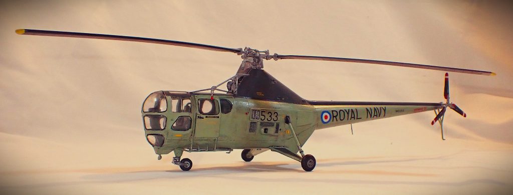The Westland Dragonfly HR.1 is a three-blade rotor multiple function utility helicopter built under license by Westland Aircraft. Most had a crew of two. The Army and RAF version was able to accommodate outboard enclosed stretchers for evacuation purposes. The Naval version was used for Air Sea Rescue off carriers and shore bases. The distinctive shape made it very recognisable with its all-glass front making it rather ‘Retro’.